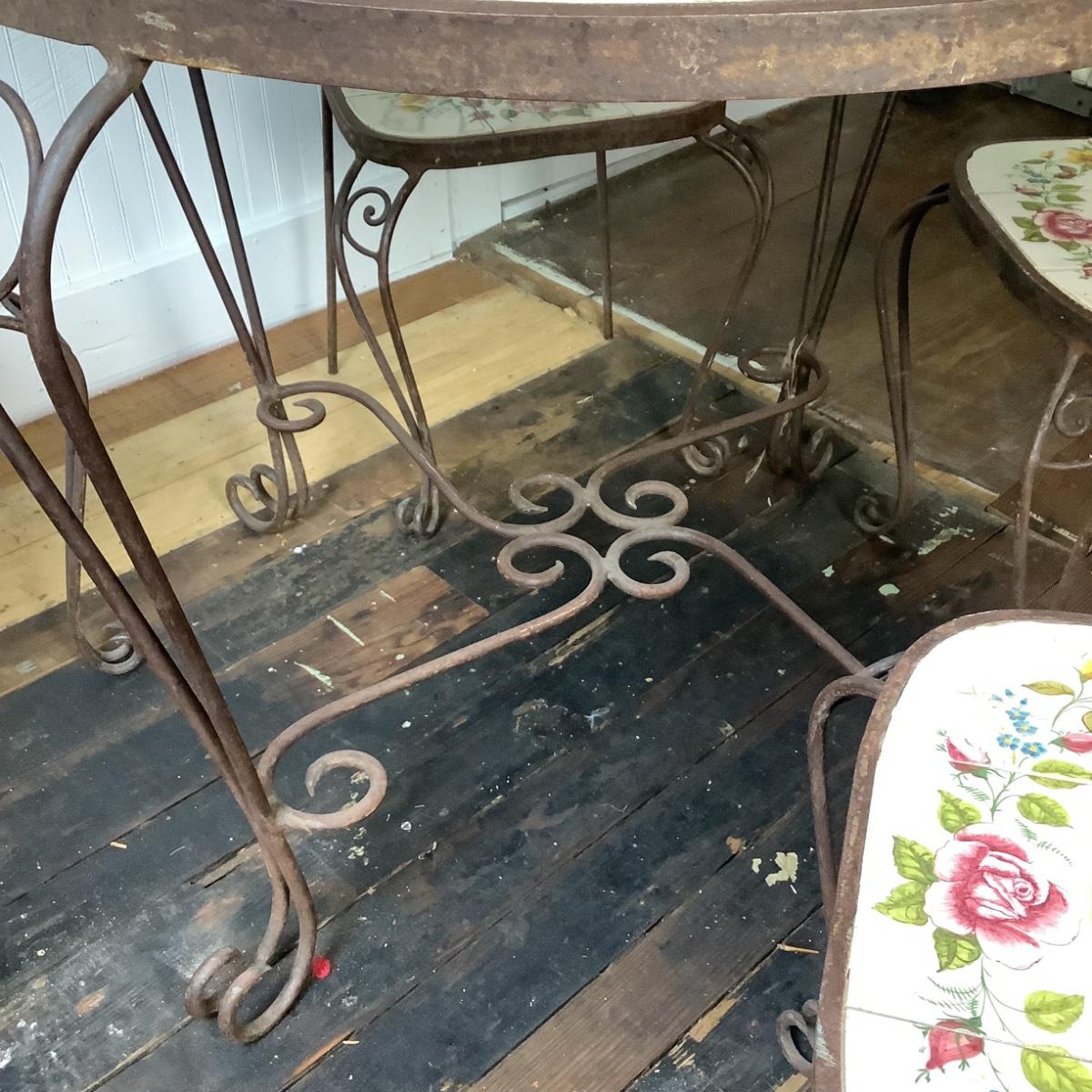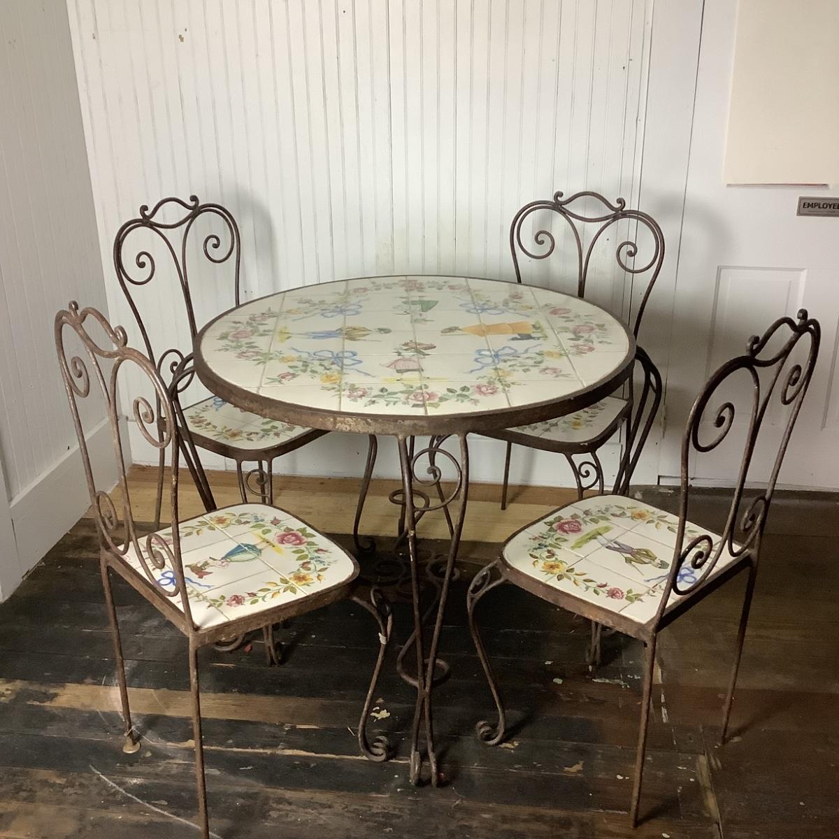 332 Portuguese Hand Painted Tile Top & Iron Table and Chairs