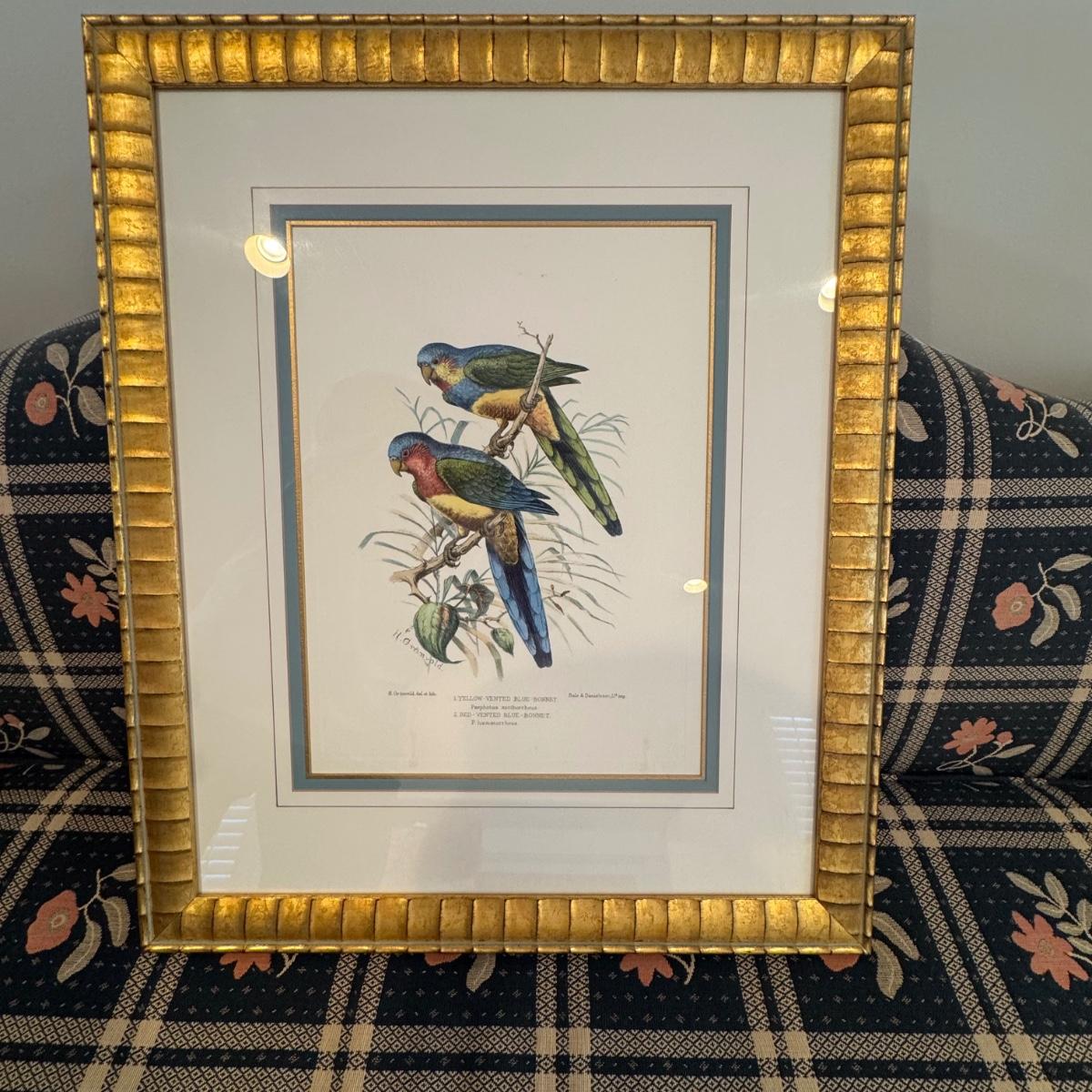 332 Hand Colored Yellow Vented Blue Bonnet Bird Print