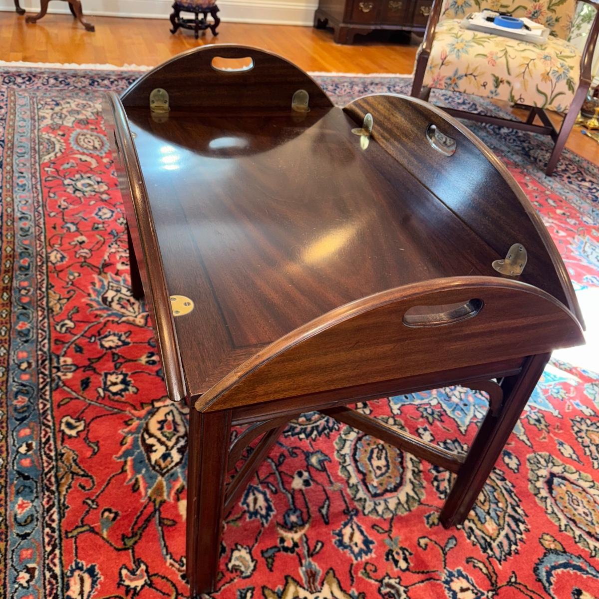 Henkel Harris Chippendale Carved Mahogany Butler's Coffee Table. Good condition with some light surface scratches on top. .