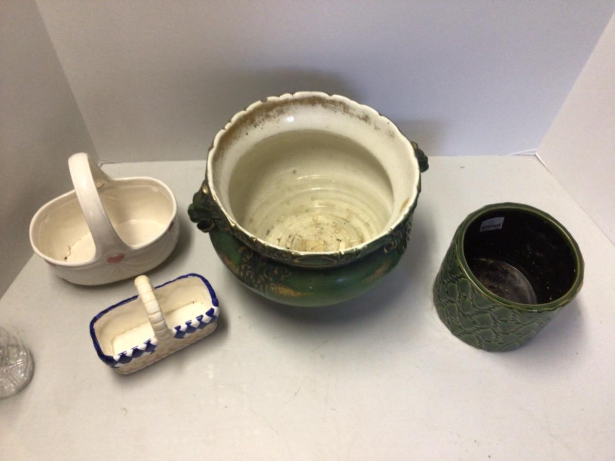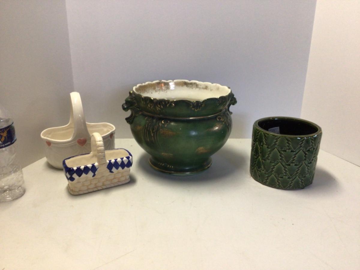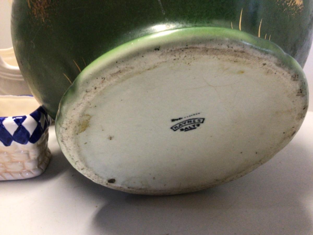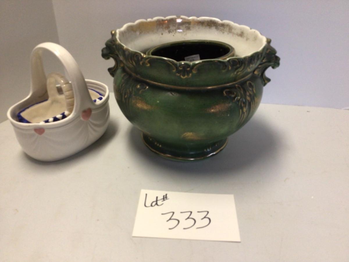 333 Vintage Haynes Green Porcelain Bowl with flower pots