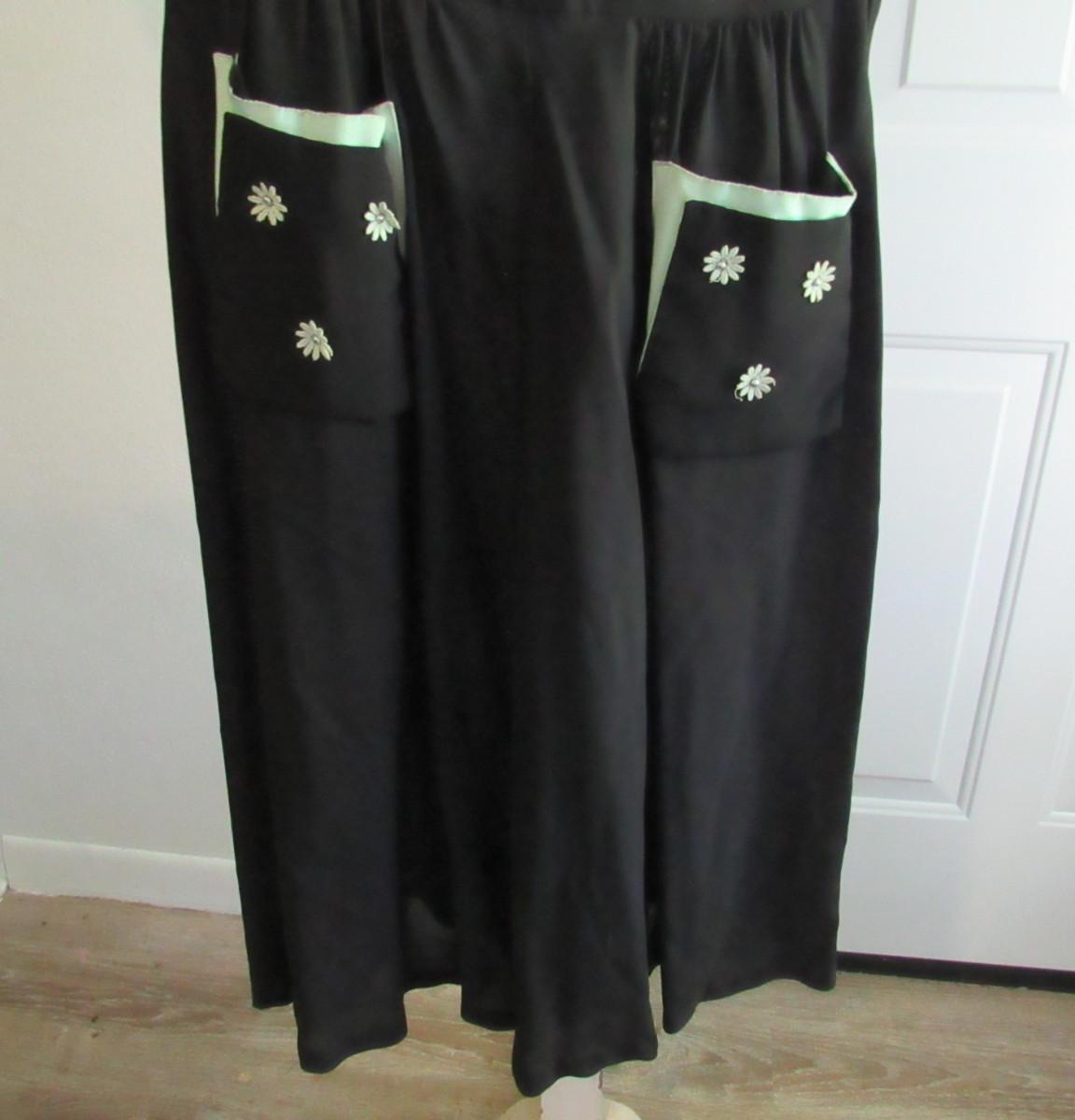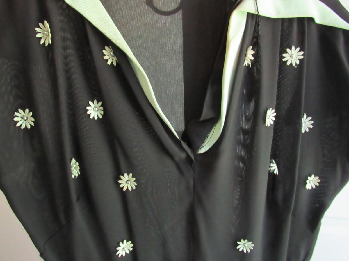 Vintage Ladies Black/Green Dress, Applied Flowers/Beads, Read Description
