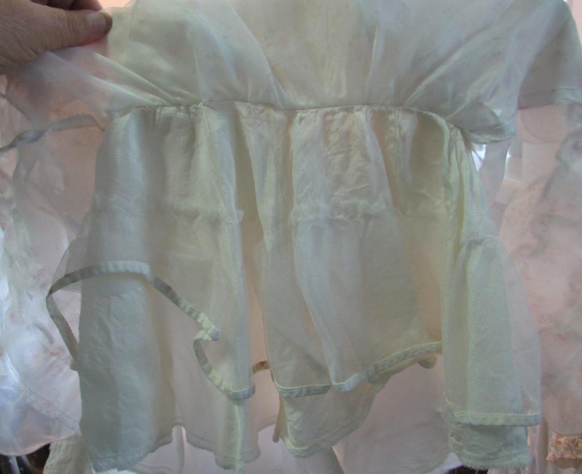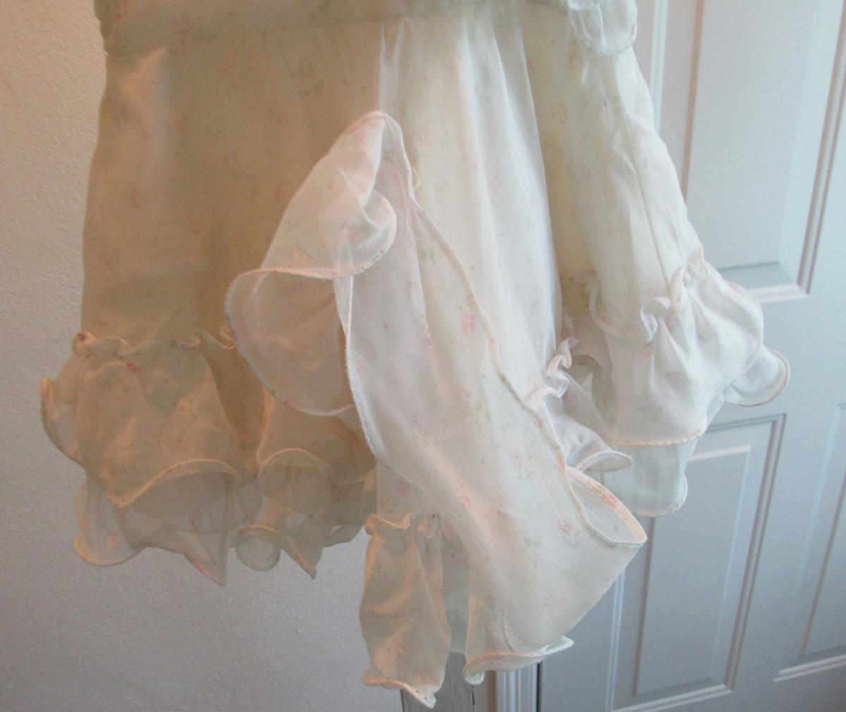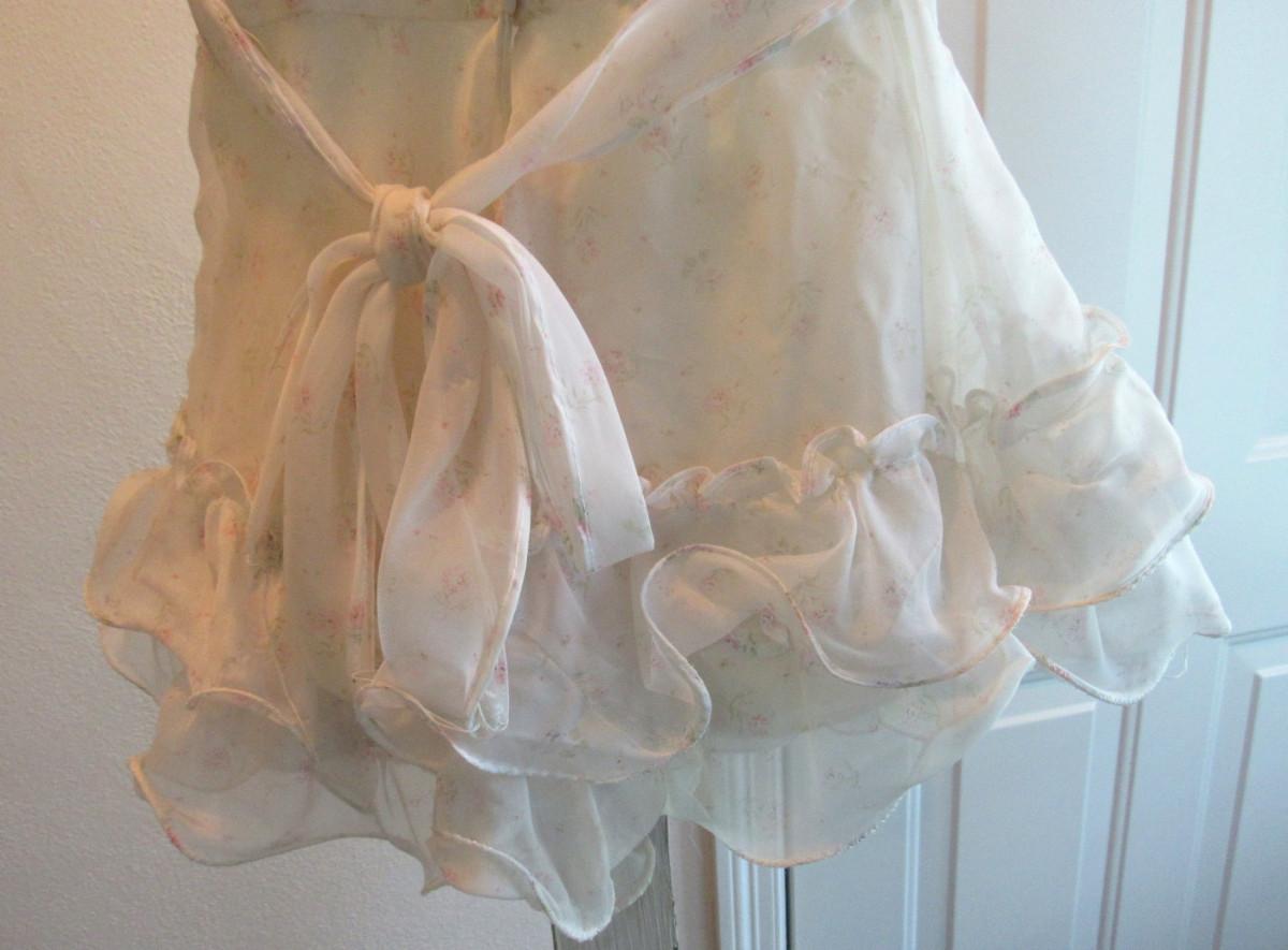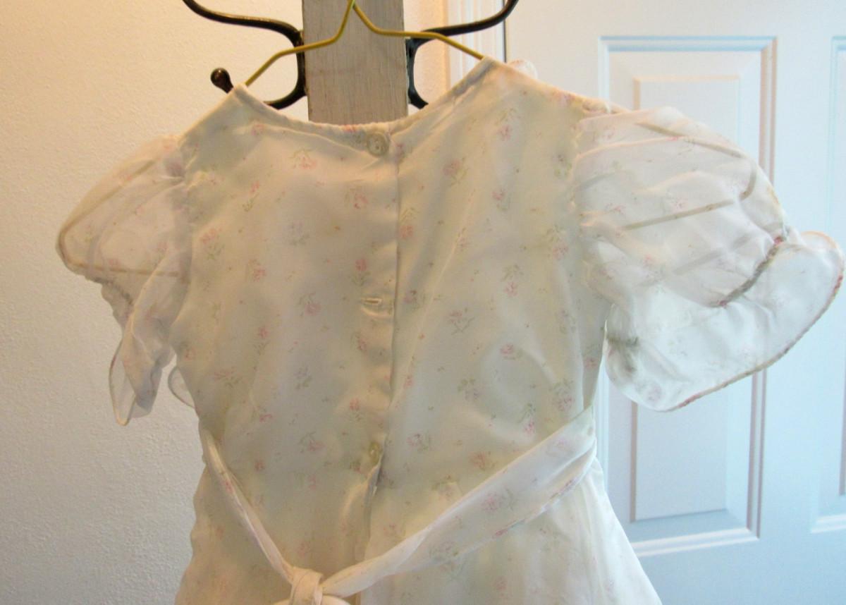 Fancy frilly Shirley Temple style vintage small girl's party dress, lots of ruffles, short sleeves, small light floral pattern. Nice underskirt and netting. Back buttons, attached back tie belt. Part of the lower ruffle has come undone and needs to be reattached. Otherwise I don't see any issues. No labels, unknown size. About 10" at the waist and about 19" long. Shipping is available at actual shipping cost plus $5.00 handling fee per box for supplies/labor. See our terms for details. All sales are final. Condition notes may not be all inclusive, we may miss some issues as most vintage items are not in mint condition and have some degree of wear, paint loss, etc, but we always try to note obvious damage.