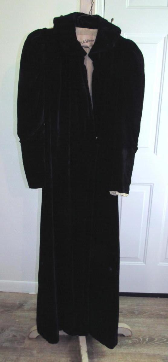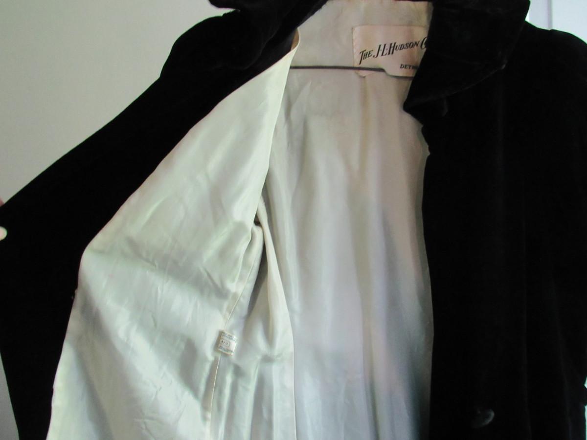 Vintage 1940-50s Ladies Black Velvet Long Coat, J L Hudson Co, Read Description