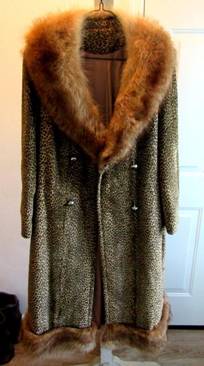 Vintage Ladies Long Coat, Fur Collar and Hem