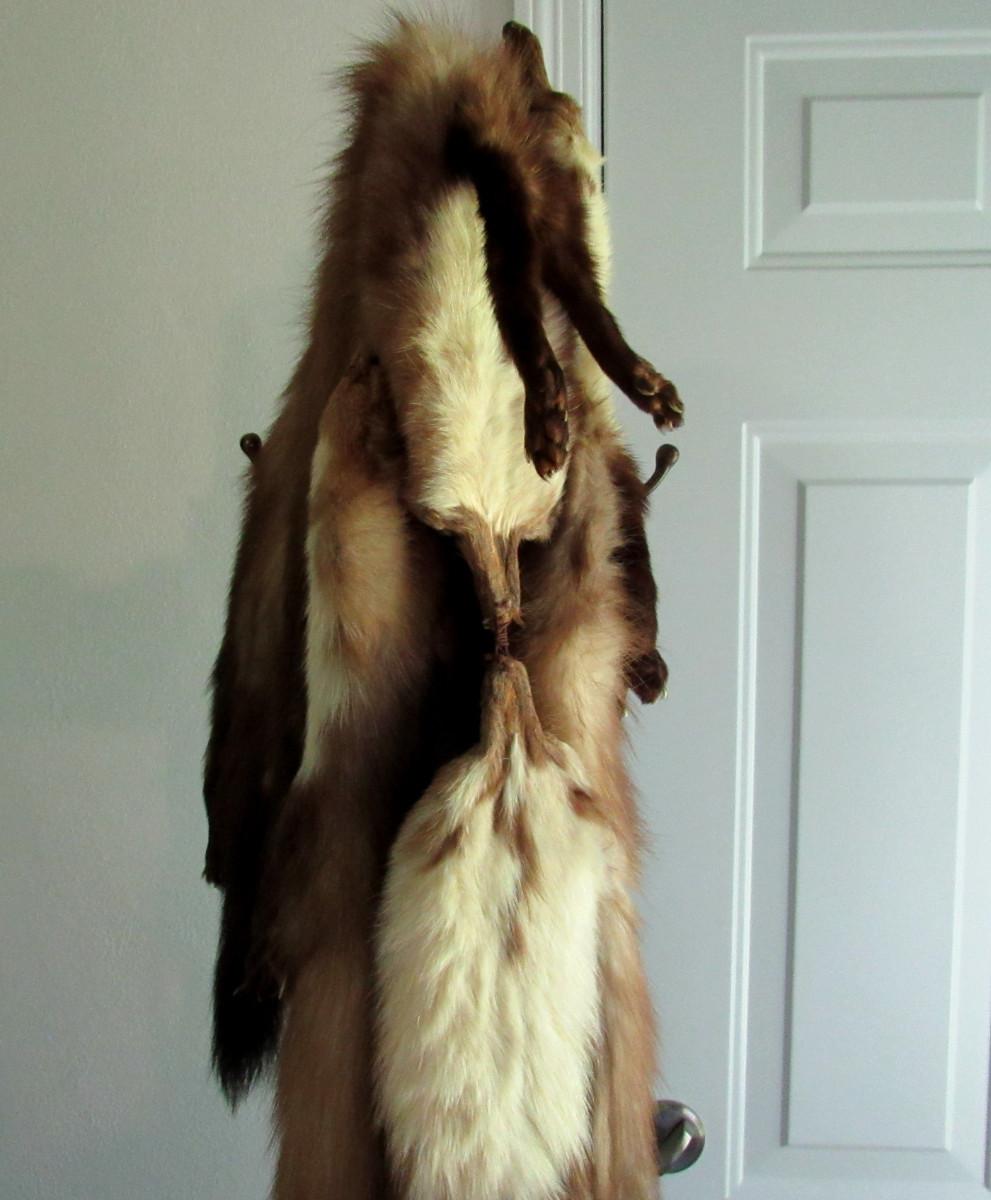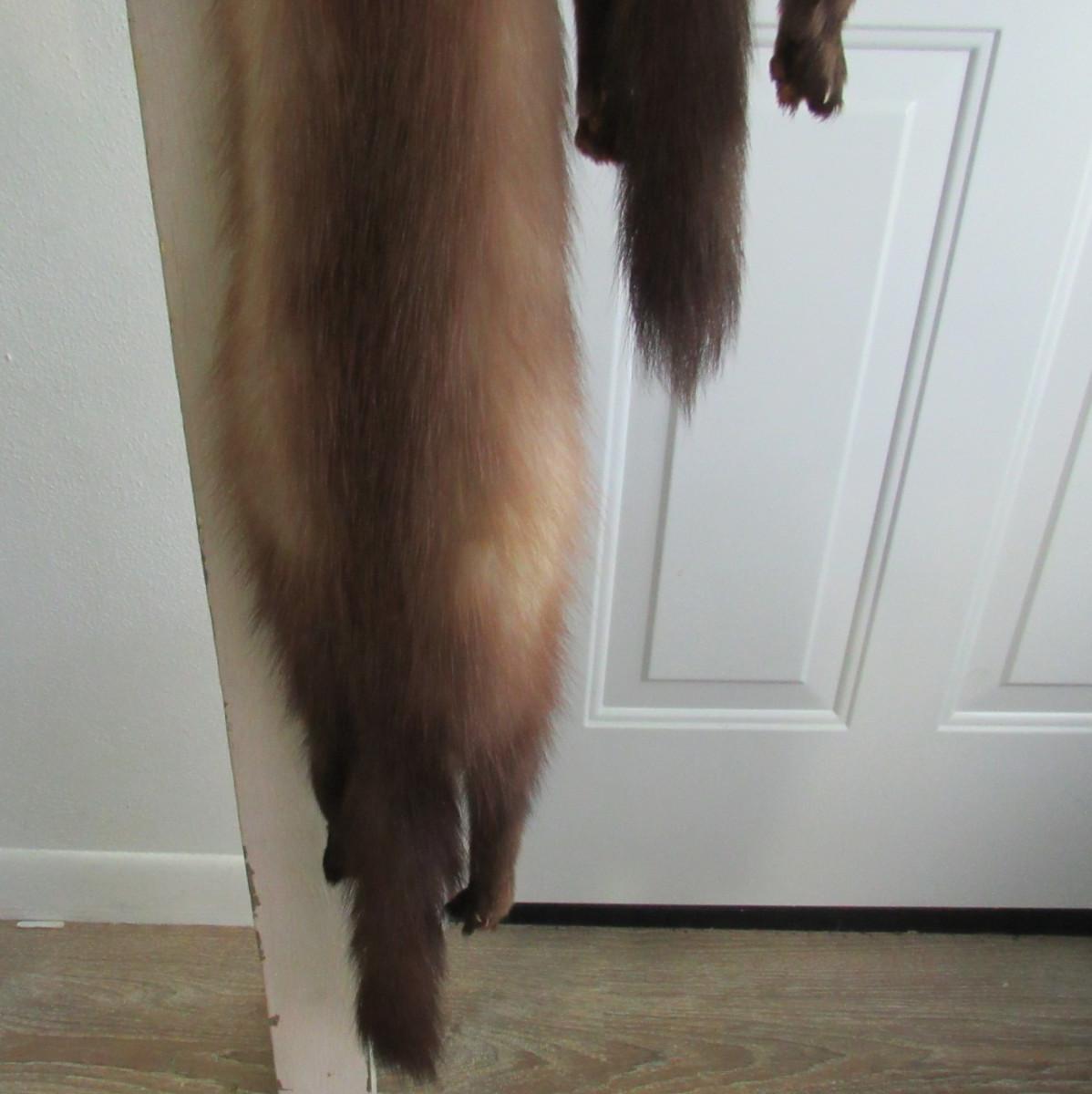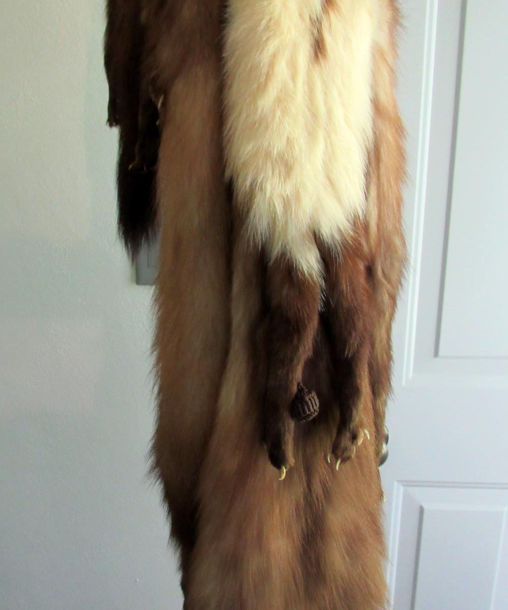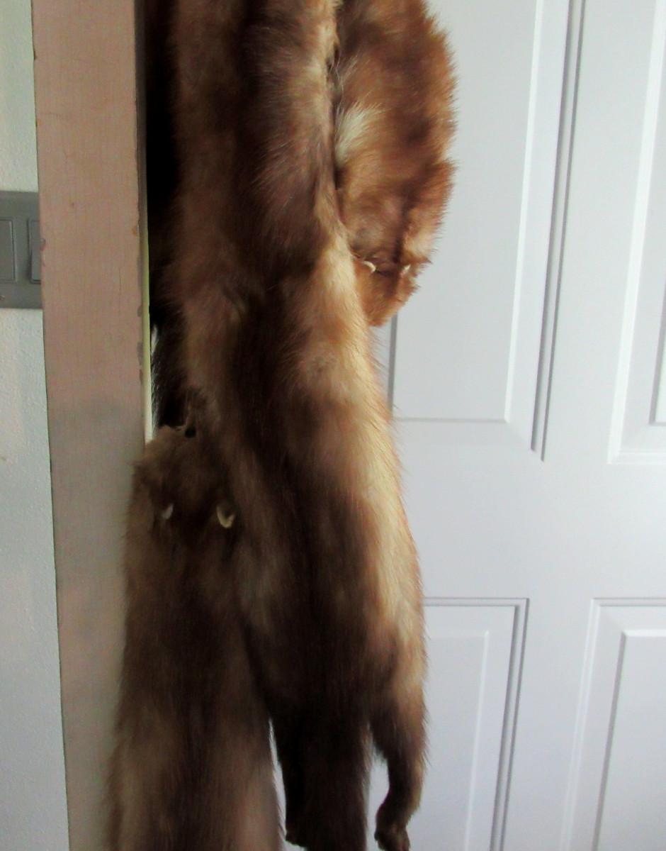 Ok, I don't think I could wear an animal on my shoulders, but some people like them! I was told they are mink, but I am not an expert. You decide from the pics. It is 77" long and appears to be in very good shape. No labels, unknown maker. Shipping is available at actual shipping cost plus $5.00 handling fee per box for supplies/labor. See our terms for details. All sales are final. Condition notes may not be all inclusive, we may miss some issues as most vintage items are not in mint condition and have some degree of wear, paint loss, etc, but we always try to note obvious damage. NOTE: buyer accepts all risk of shipping of such a delicate item.