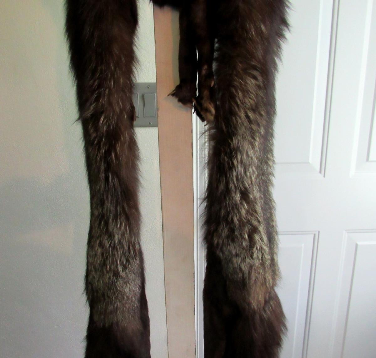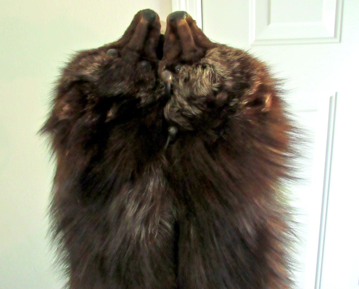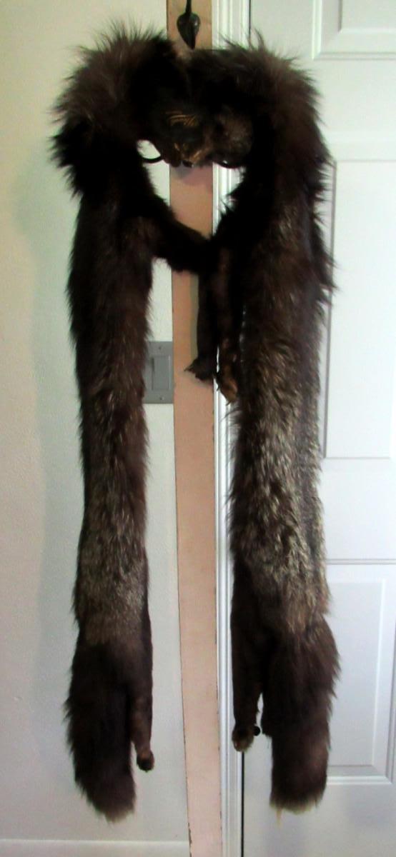 I have no idea what kind of animal this is. You guys will know. Possibly Fox? Full body dark brown to black long fur. The bodies are snout to tail 52" long, so whole stole is about 104" long. One eye is missing. Otherwise seems in good shape. Has arm or shoulder straps. EF Steude, Oshkosh label inside. Shipping is available at actual shipping cost plus $5.00 handling fee per box for supplies/labor. See our terms for details. All sales are final. Condition notes may not be all inclusive, we may miss some issues as most vintage items are not in mint condition and have some degree of wear, paint loss, etc, but we always try to note obvious damage.. NOTE: buyer accepts all risk of shipping of such a delicate item.