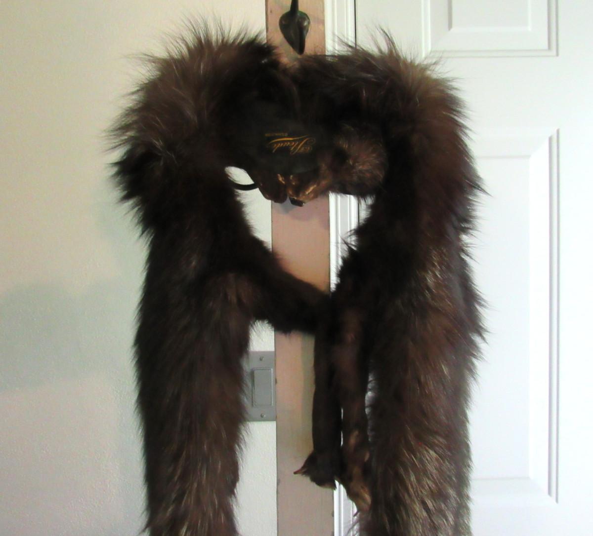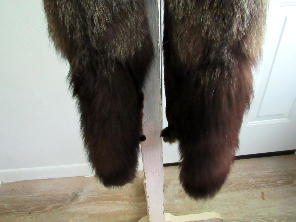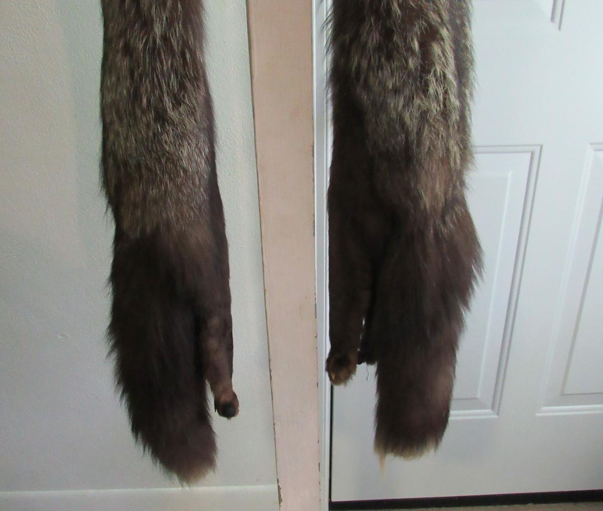 I have no idea what kind of animal this is. You guys will know. Possibly Fox? Full body dark brown to black long fur. The bodies are snout to tail 52" long, so whole stole is about 104" long. One eye is missing. Otherwise seems in good shape. Has arm or shoulder straps. EF Steude, Oshkosh label inside. Shipping is available at actual shipping cost plus $5.00 handling fee per box for supplies/labor. See our terms for details. All sales are final. Condition notes may not be all inclusive, we may miss some issues as most vintage items are not in mint condition and have some degree of wear, paint loss, etc, but we always try to note obvious damage.. NOTE: buyer accepts all risk of shipping of such a delicate item.