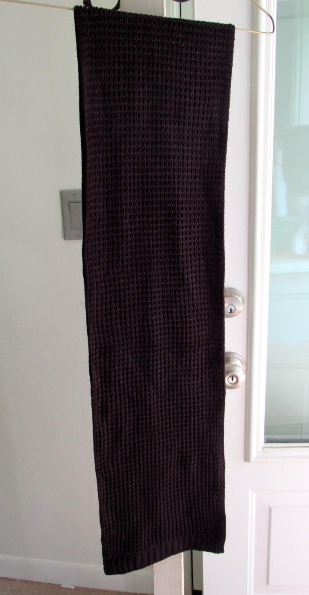 Was very hard to photograph. It is a nice waffle weave very long black scarf. Nice shape. Shipping is available at actual shipping cost plus $5.00 handling fee per box for supplies/labor. See our terms for details. All sales are final. Condition notes may not be all inclusive, we may miss some issues as most vintage items are not in mint condition and have some degree of wear, paint loss, etc, but we always try to note obvious damage.