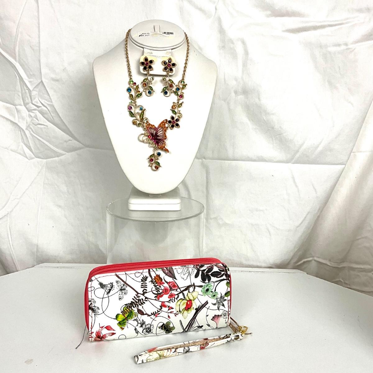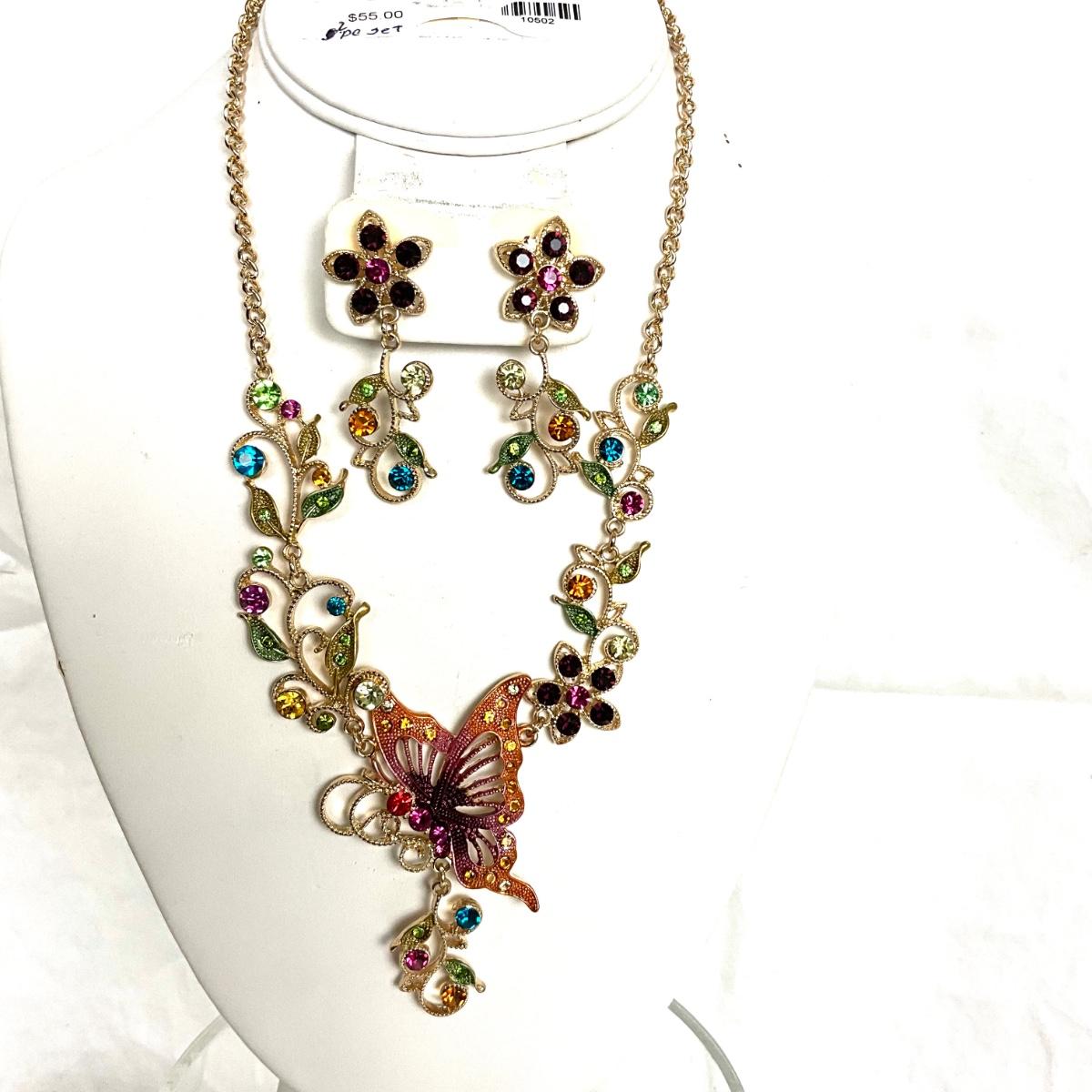 334 Butterfly Rhinestone Necklace and Earring Set with Butterfly Clutch