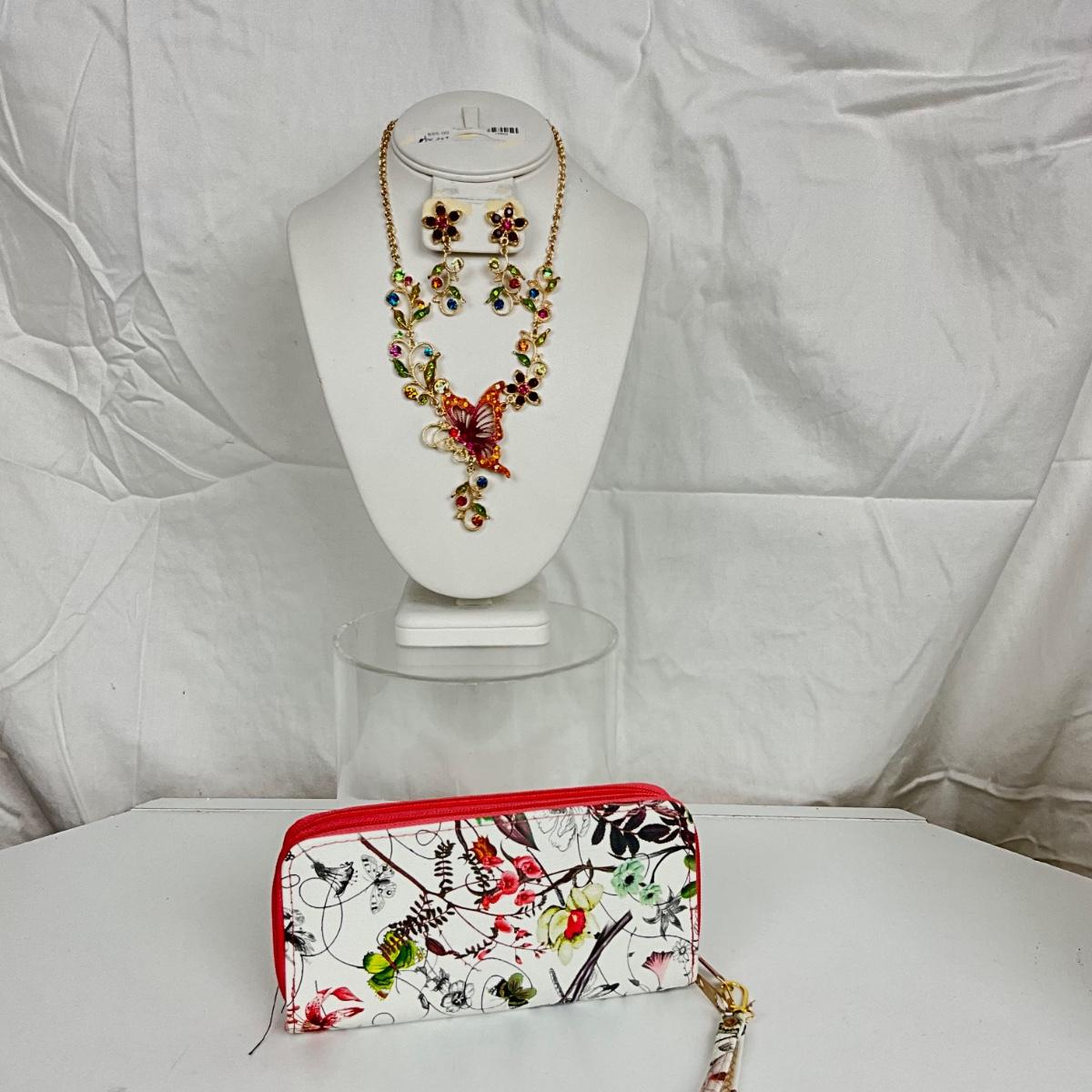 334 Butterfly Rhinestone Necklace and Earring Set  with Butterfly Clutch