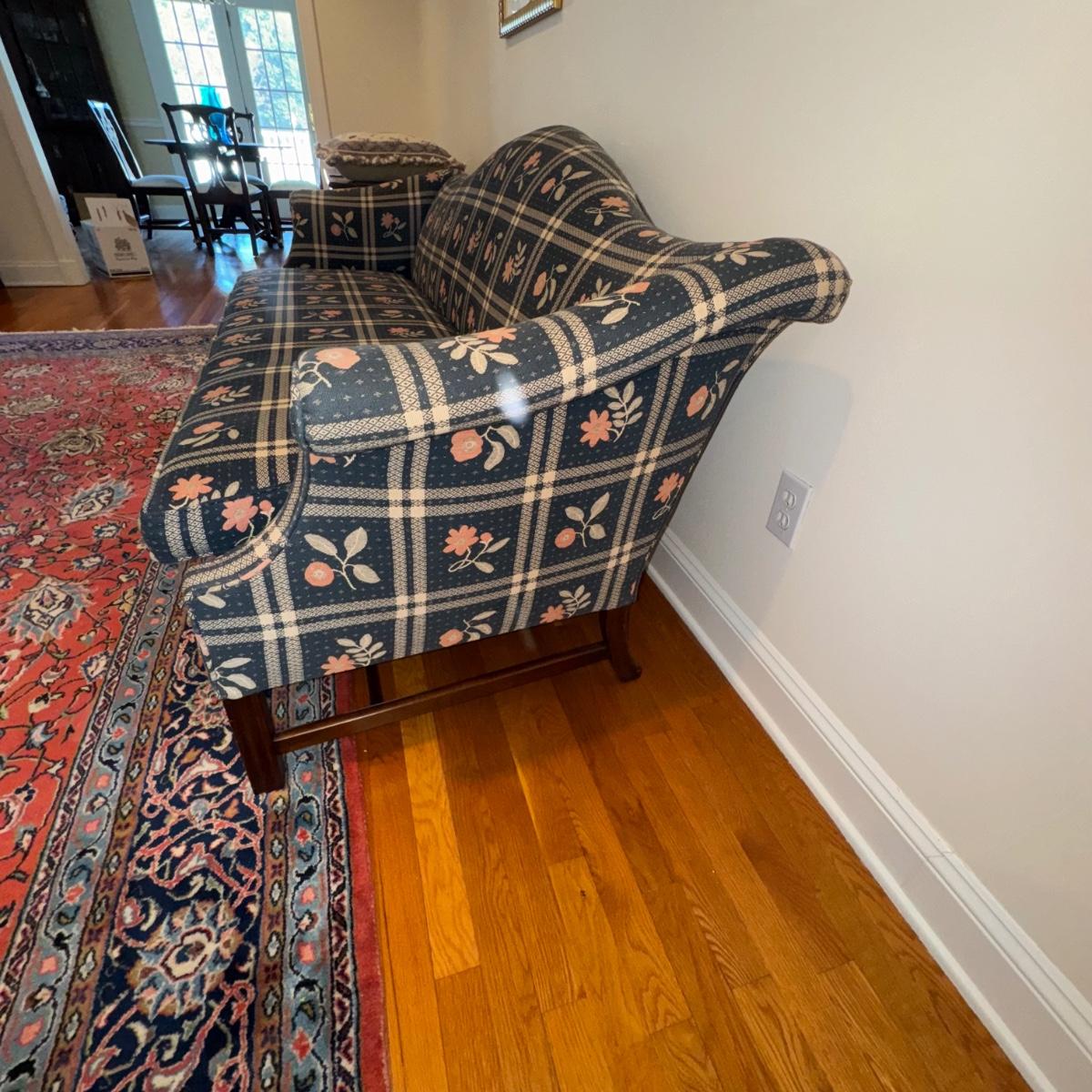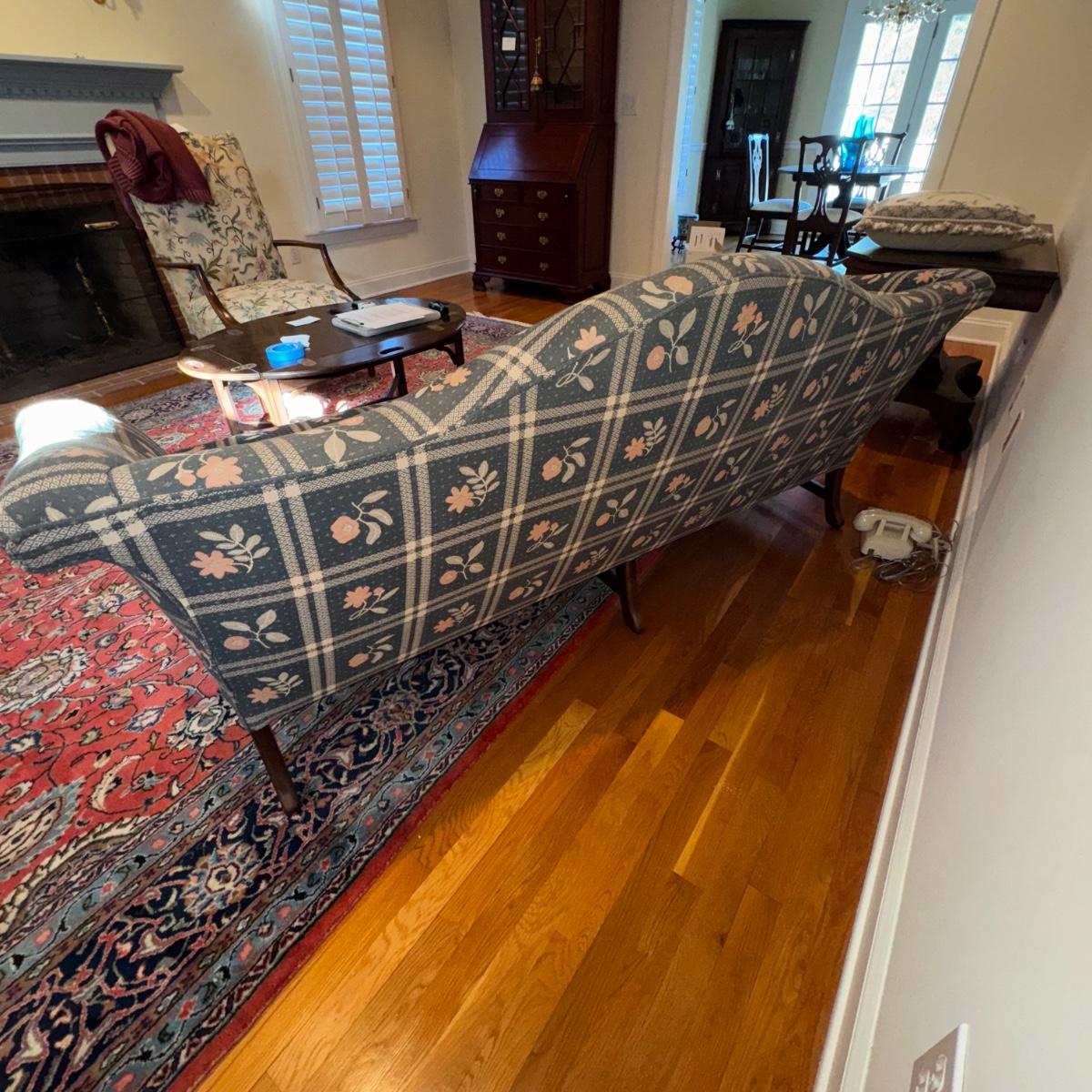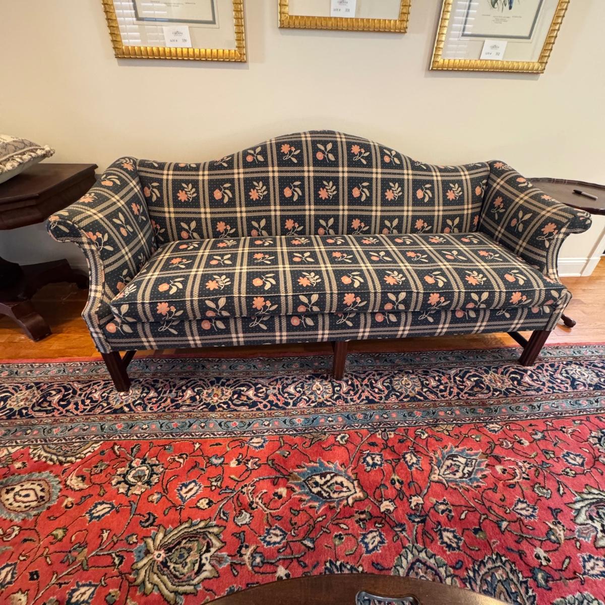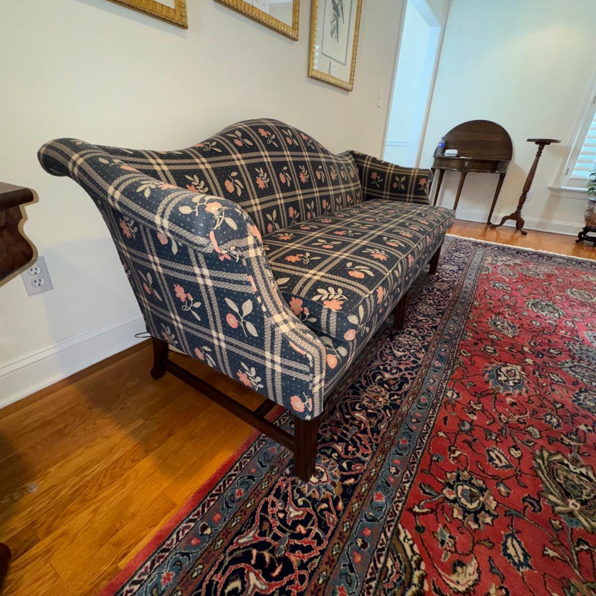 Chippendale Style Upholstered Sofa. Overall, great condition there is some fading in the floral pattern material. Structurally sound cushions in great shape.