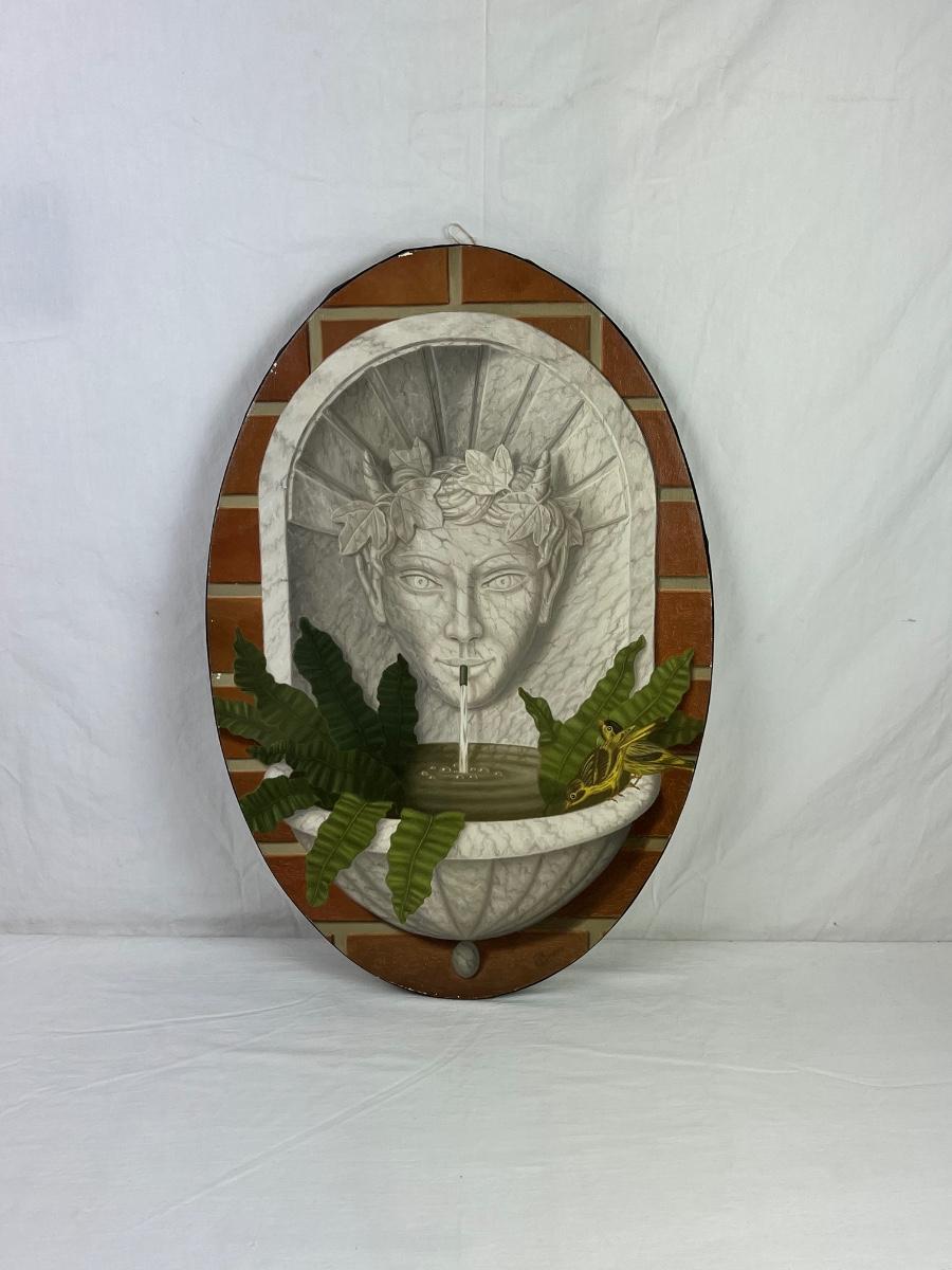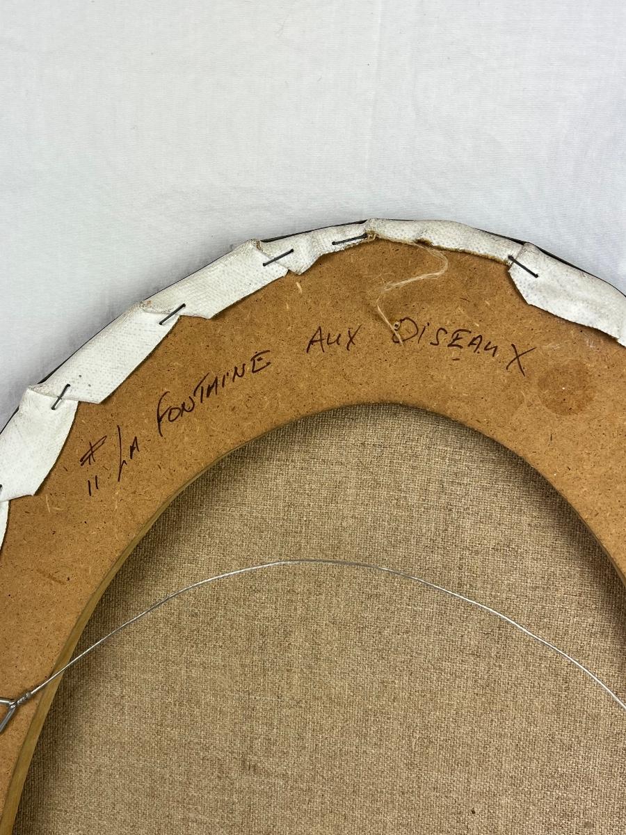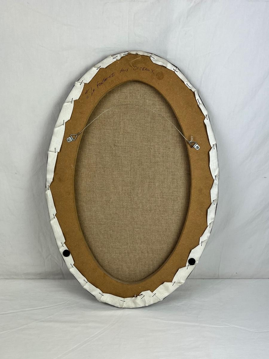 "La Fountain Aux Diseaux" Hand painted oval canvas signed 1992 by J. Graud Giraud.
