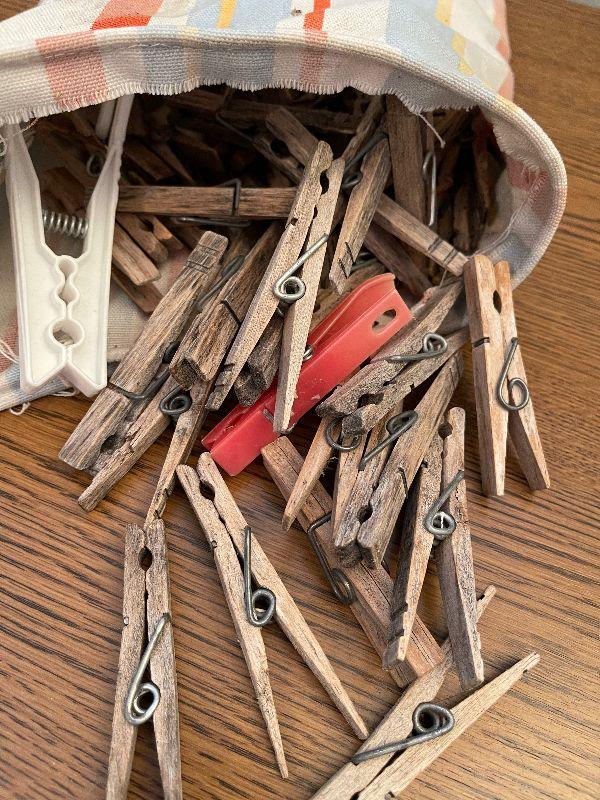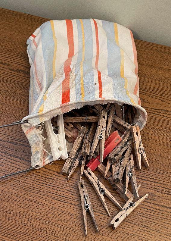 #334 VINTAGE Clothes pins and bag
