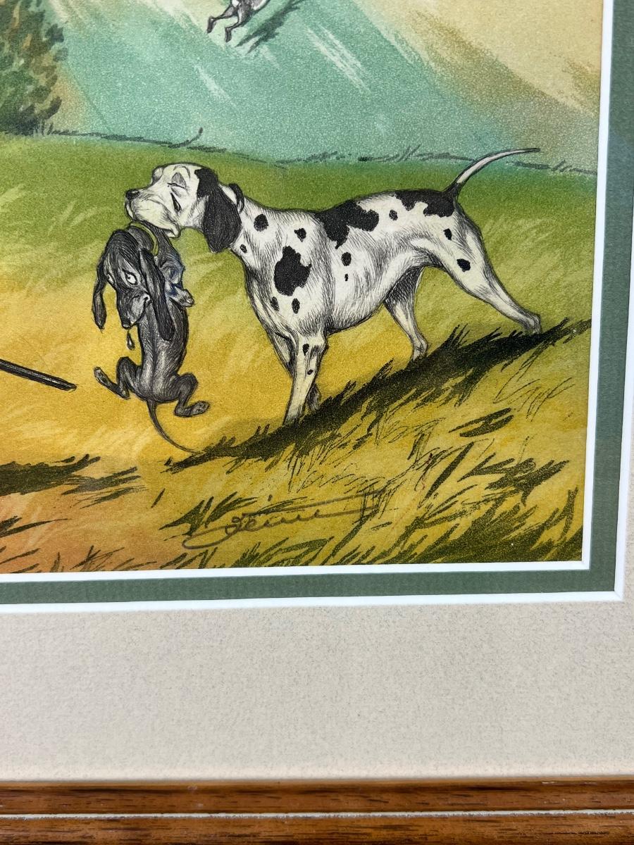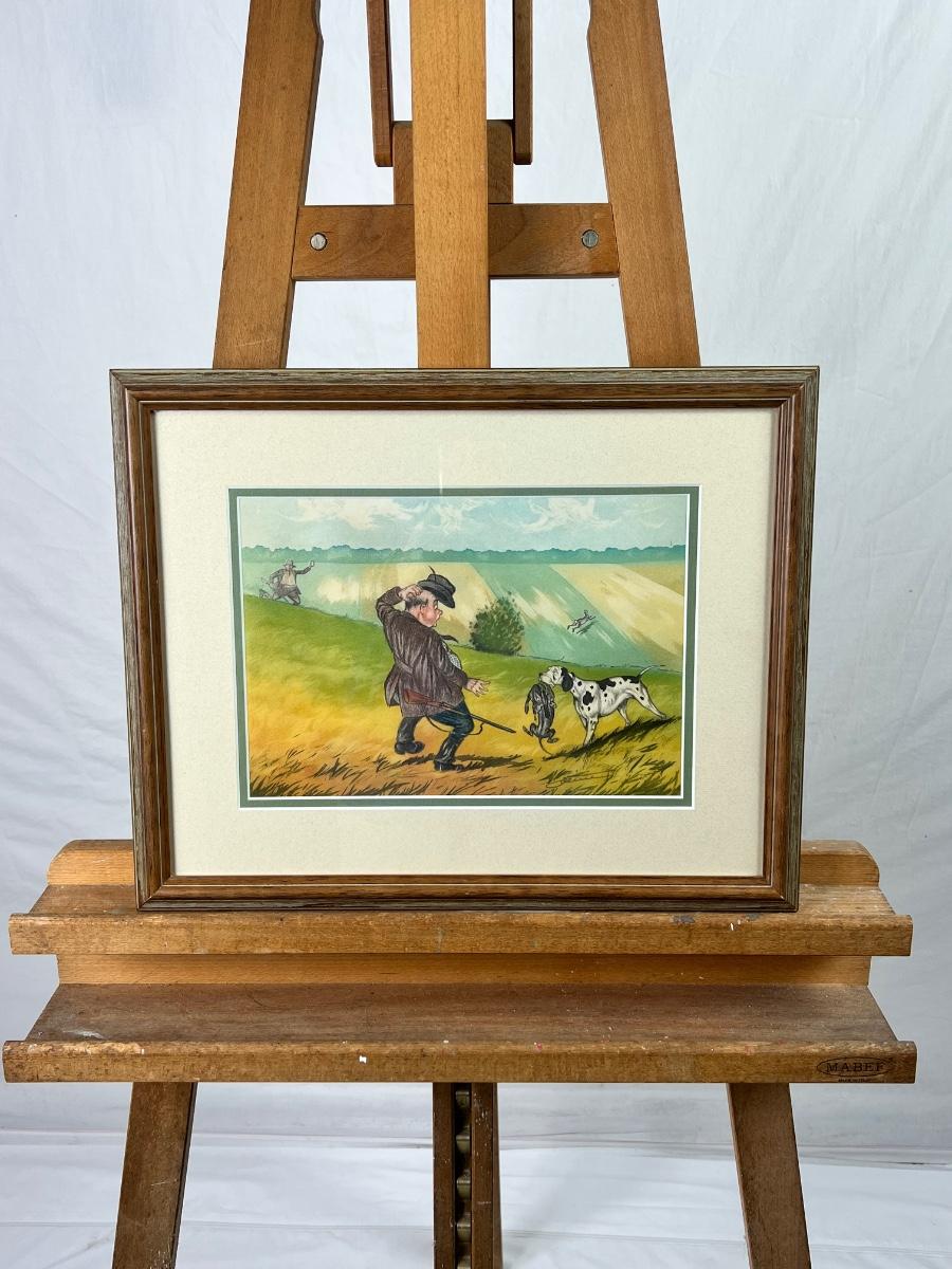 Framed, double mat & signed aquatint of satirical scene by Boris O'Klein.