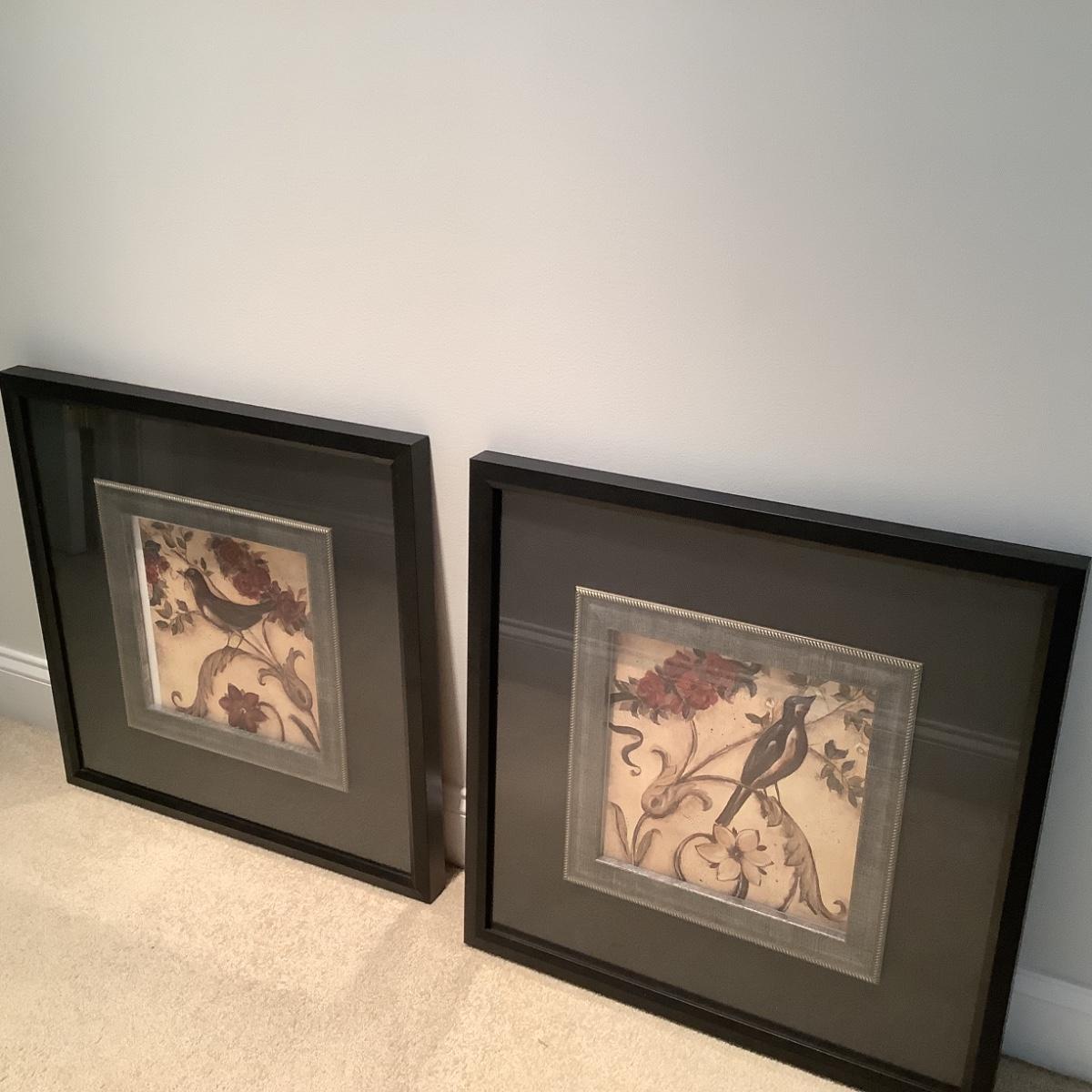 Pair of similar Cosmic bird Prints framed in shadow box frames measuring 24.75" square