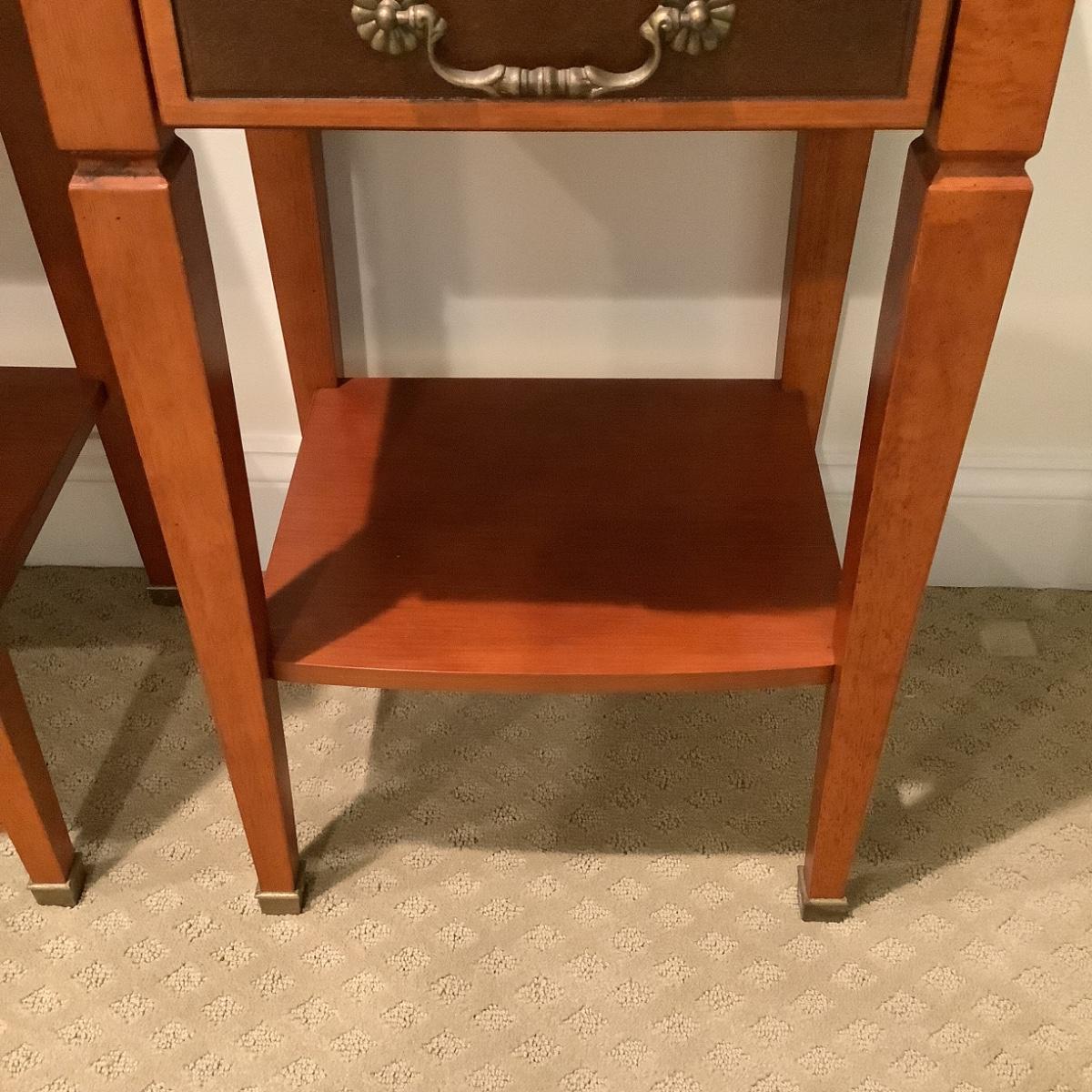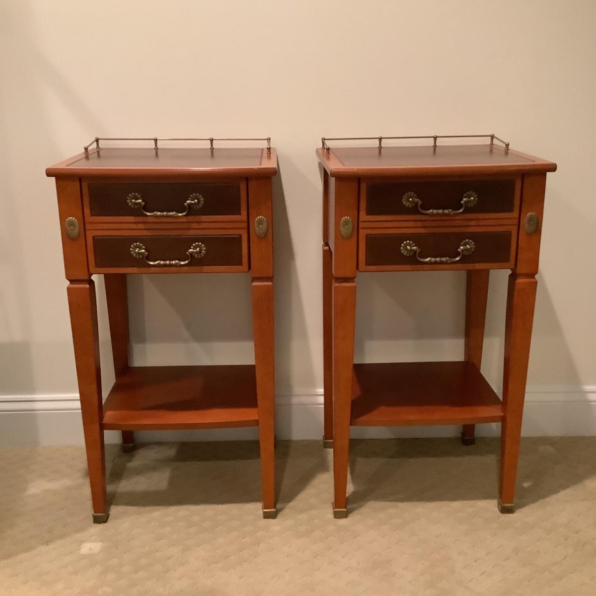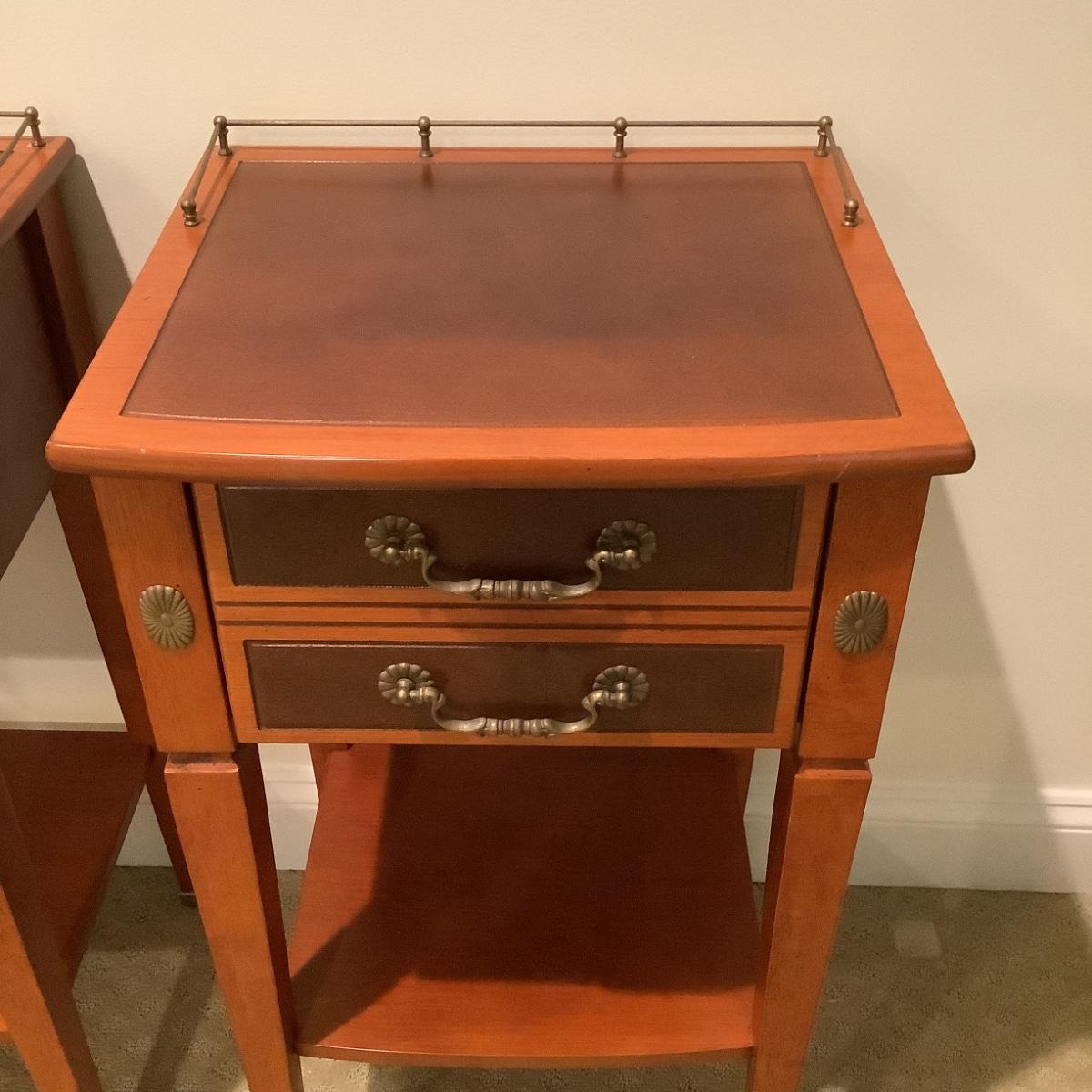 Constructed of mixed material with single drawer , one shelf , brass adornments