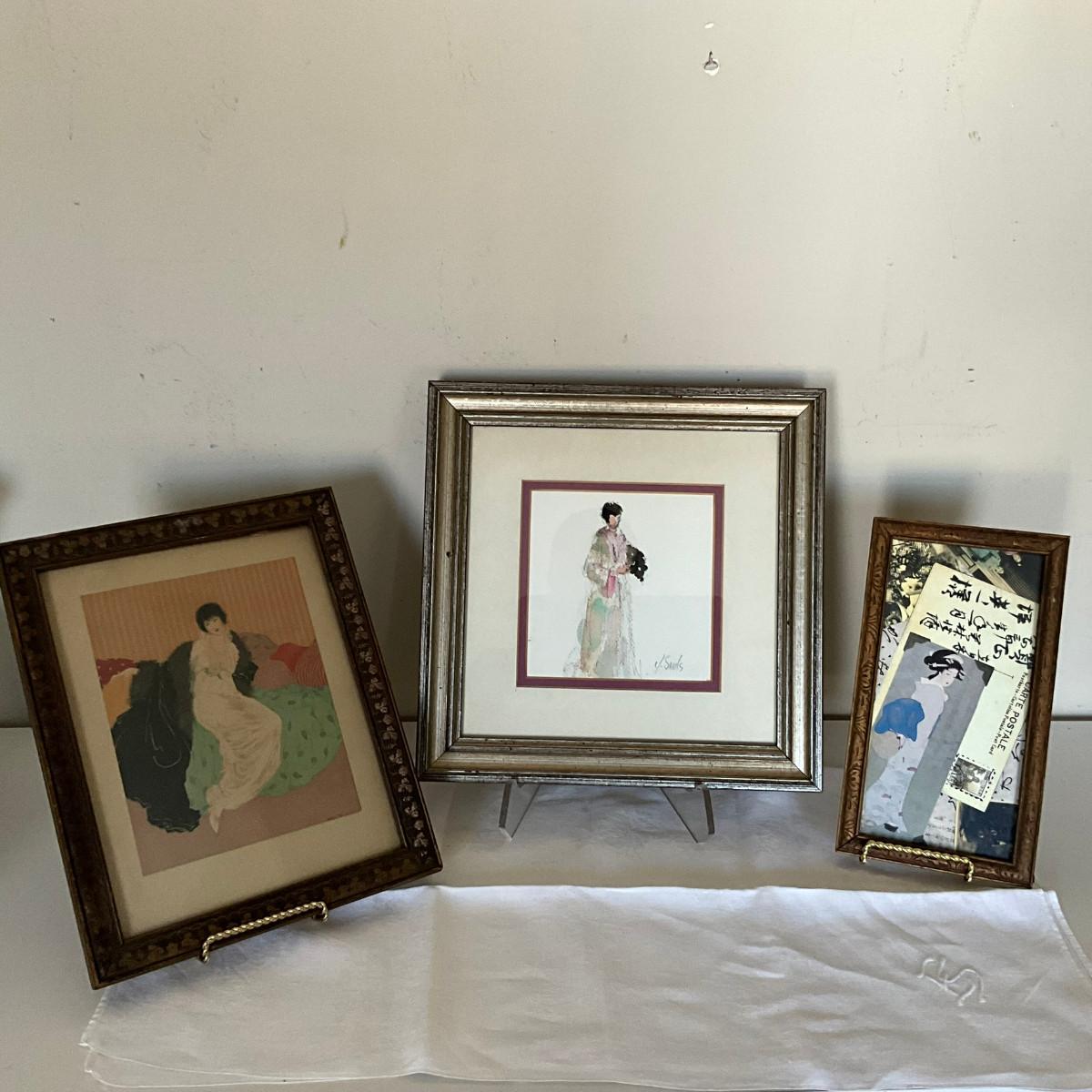 336 Trio Of Framed Vintage Art Prints of Elegant Women In Various Styles
