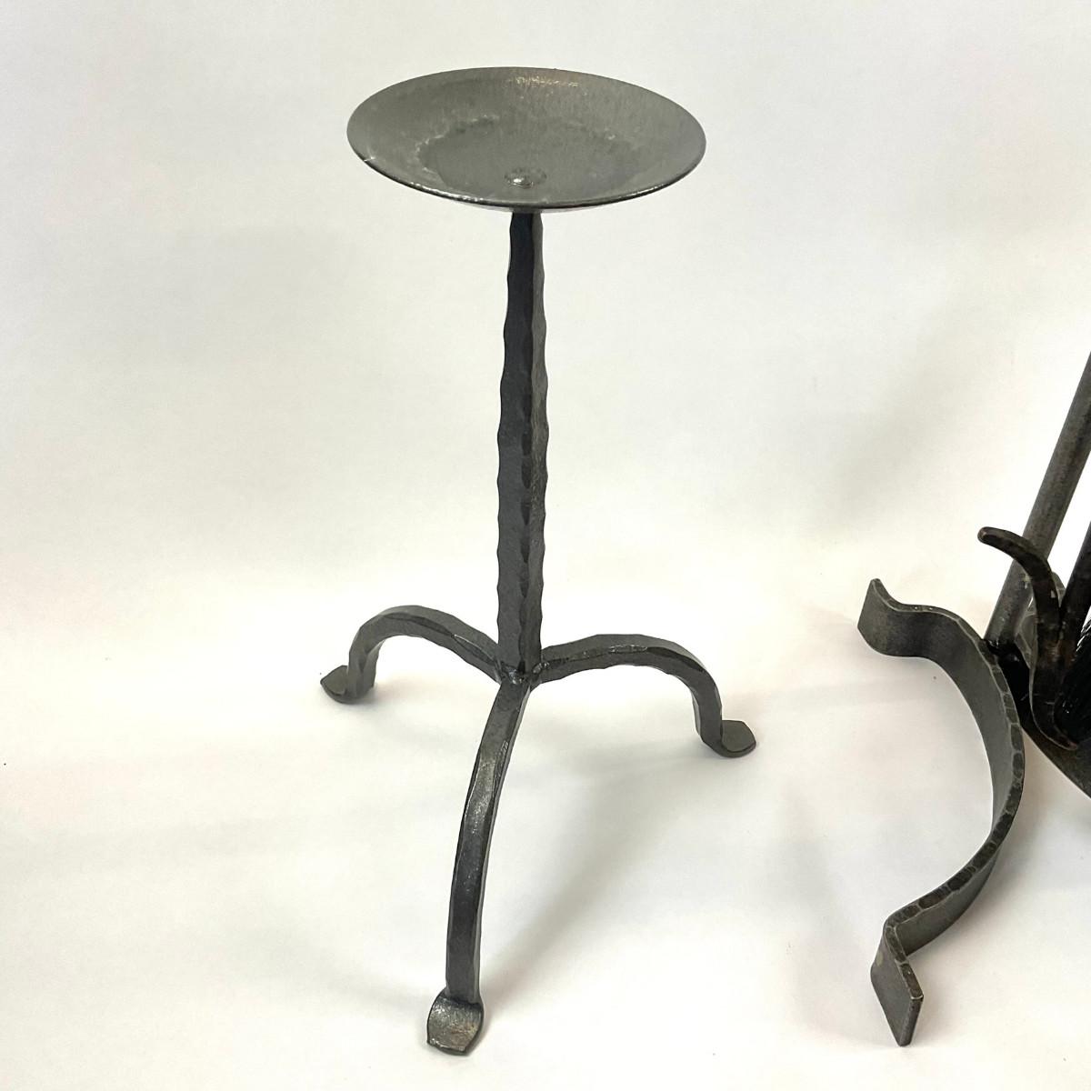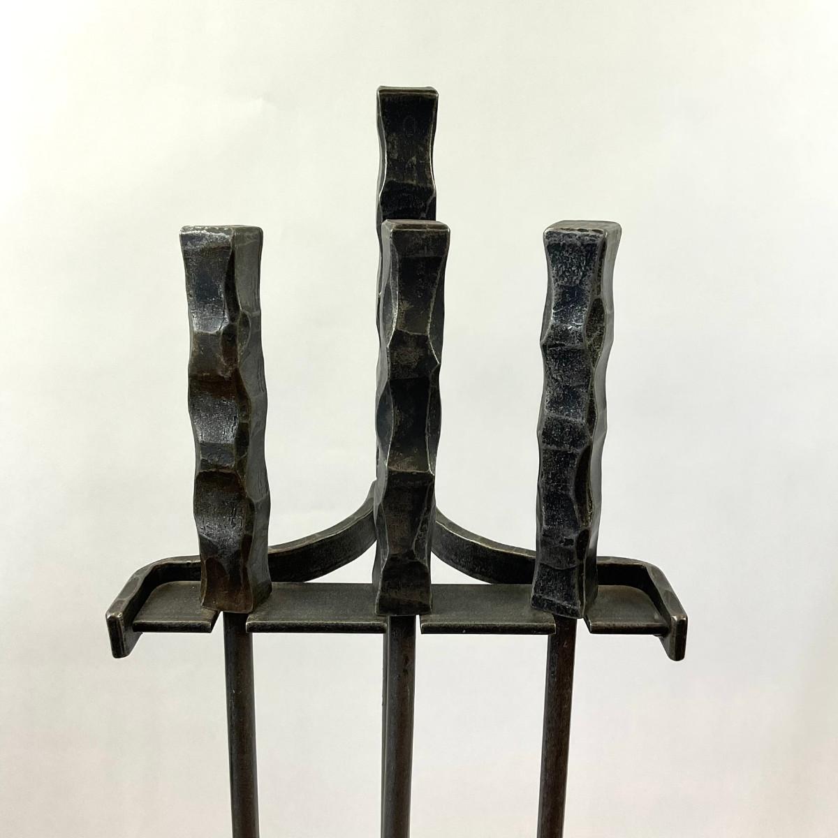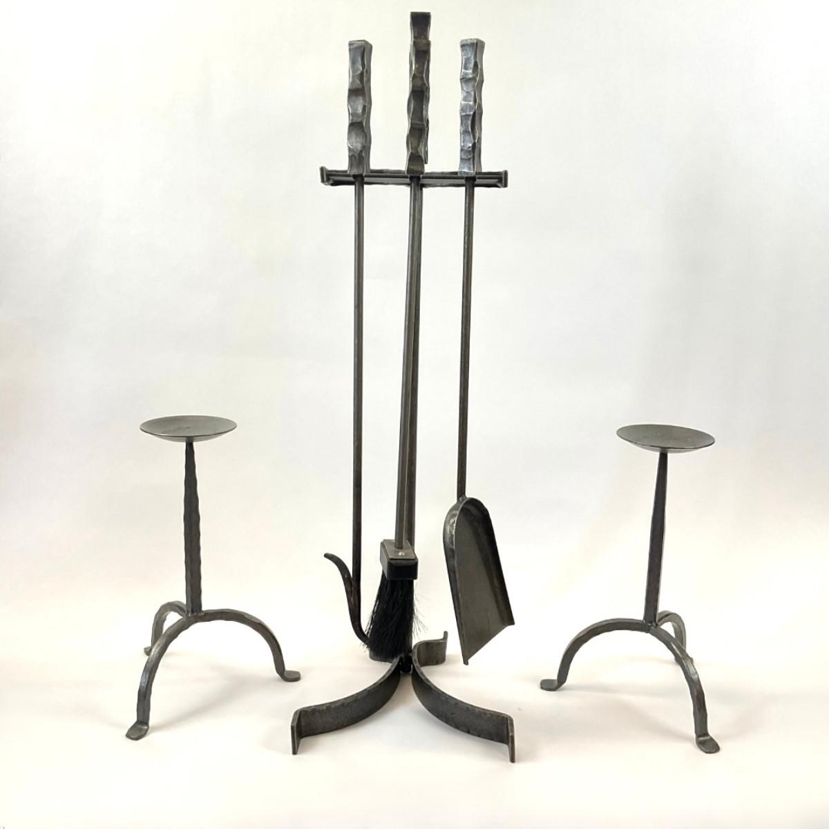 337 Hand-Hammered Fireplace Tool Set With Pair Of Candle Holders