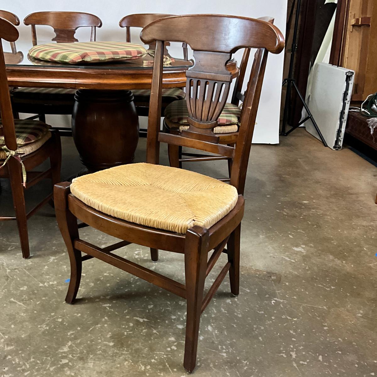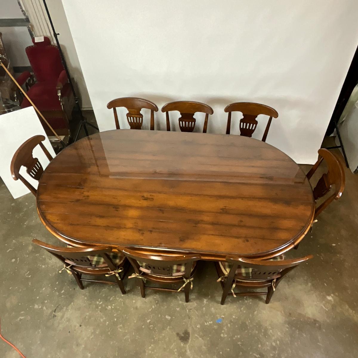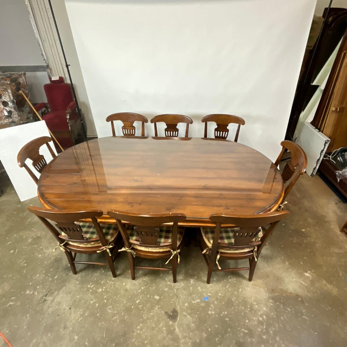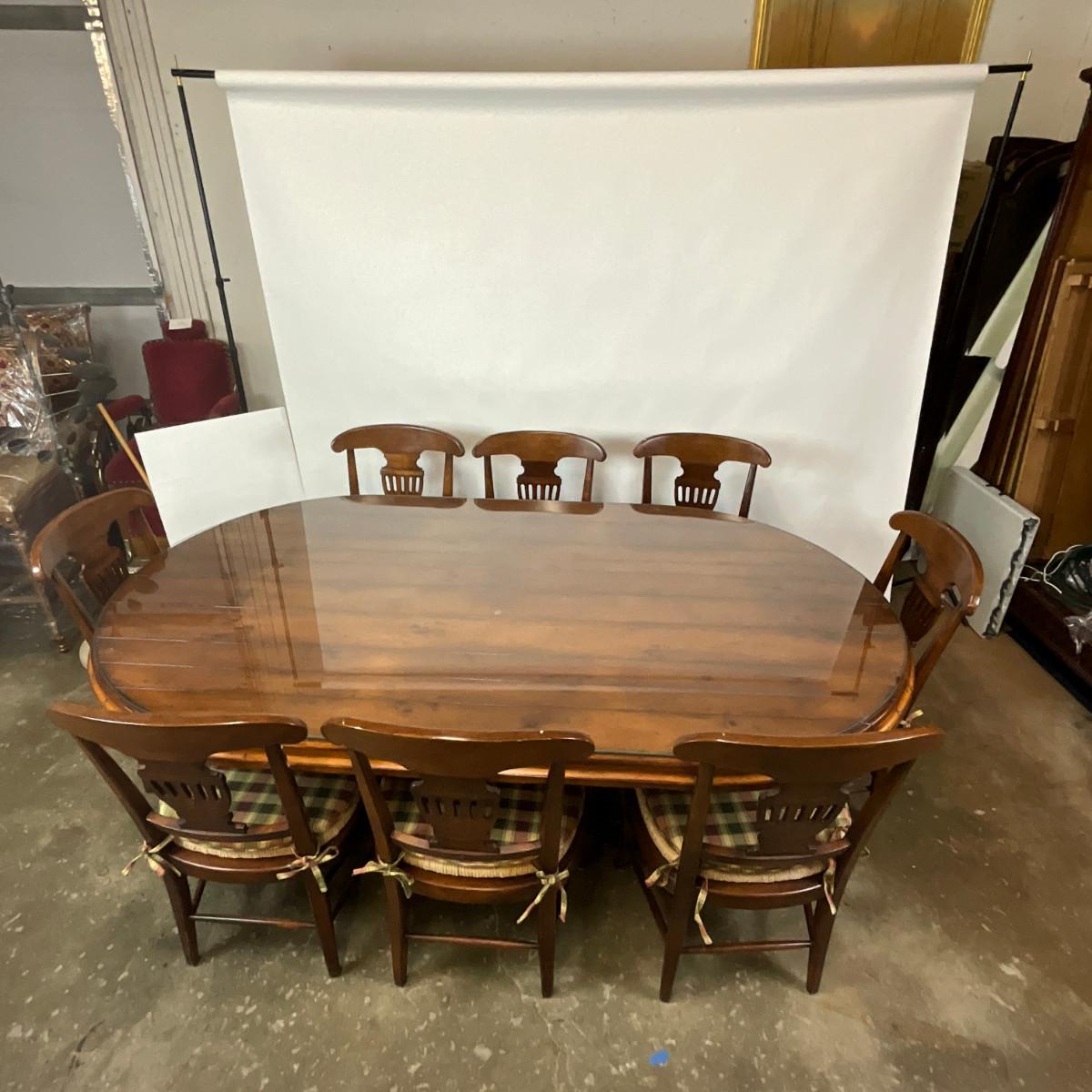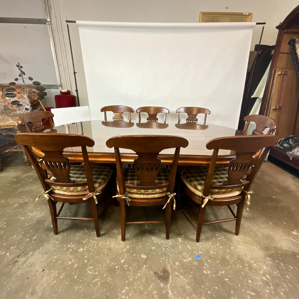 377 Large Oval Woodland Furniture Table With Eight Chairs and Glass Top