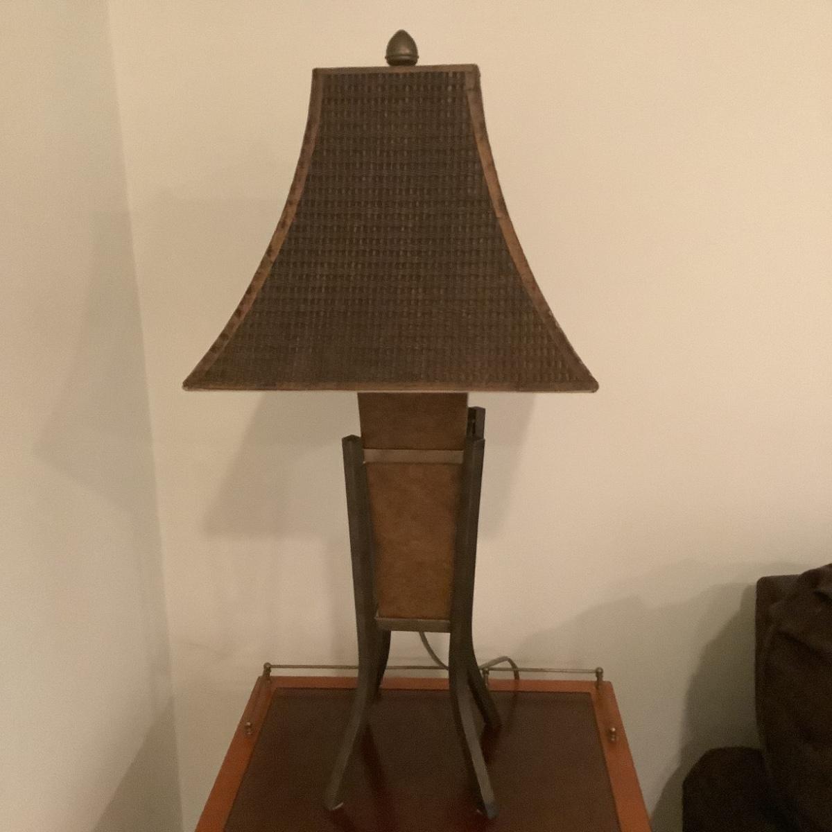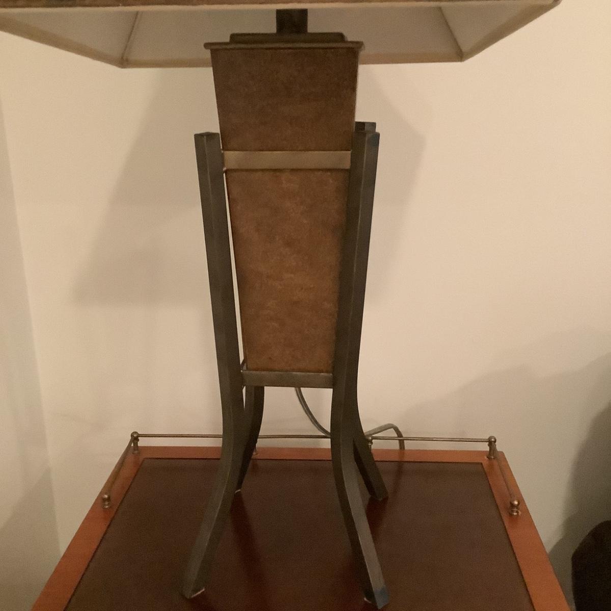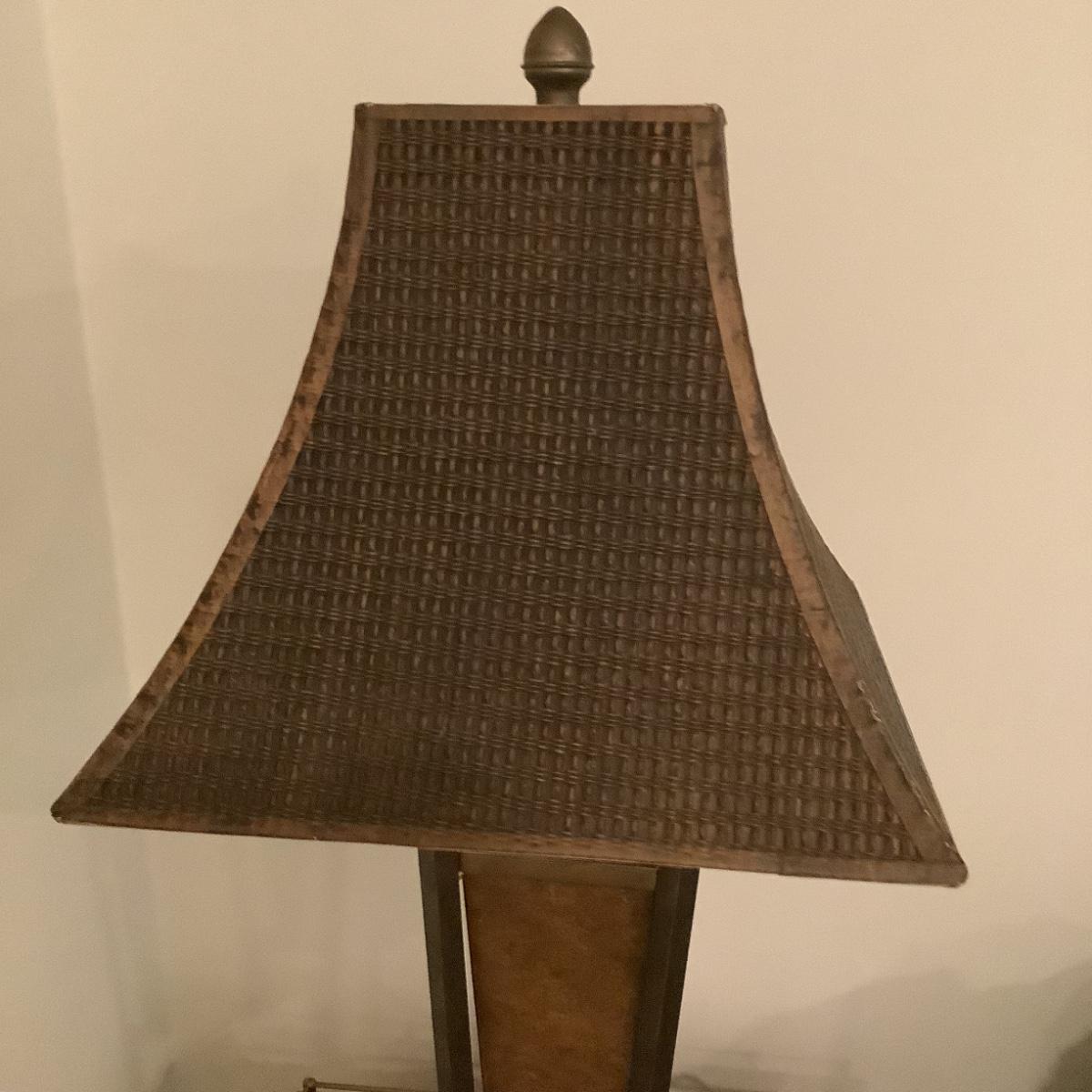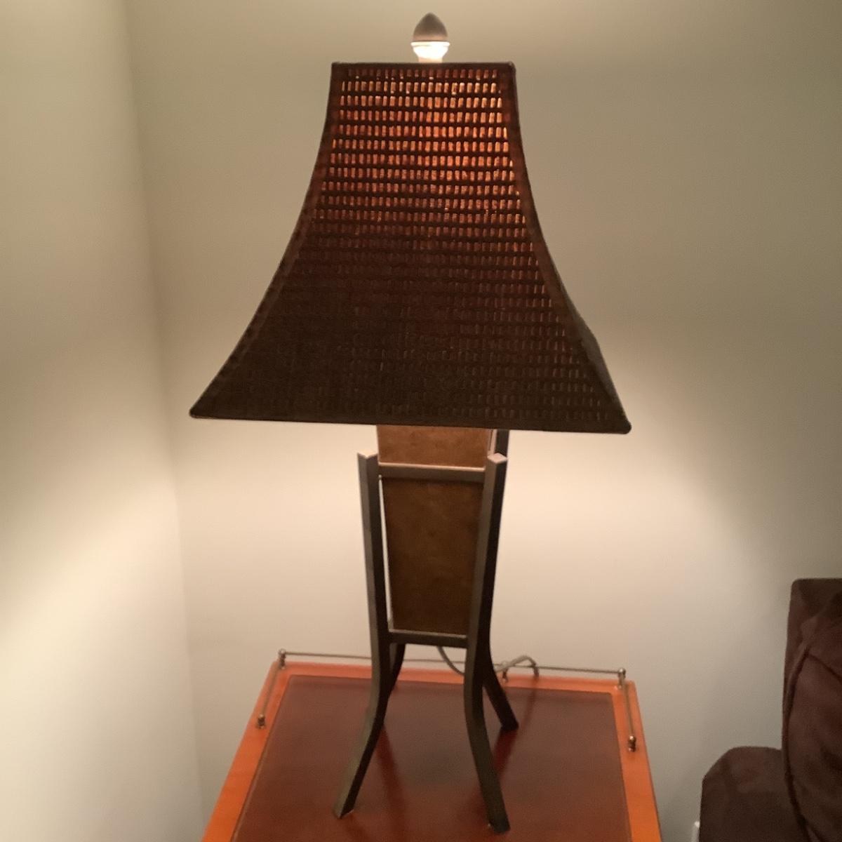 337 Metal Vase on Stand with Textured Bamboo Style Shade