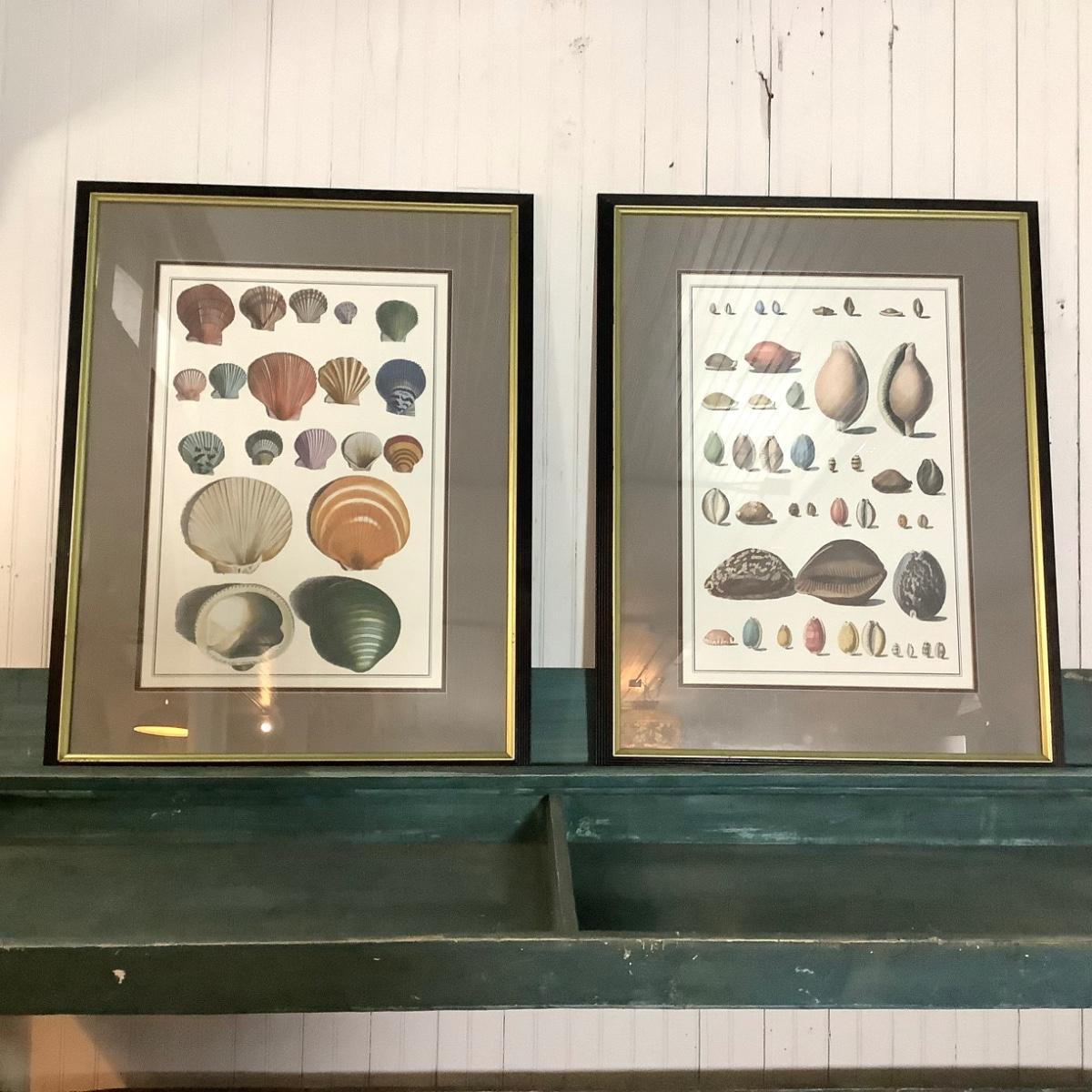 338 Pair of Vintage Nautical Matted Framed Seashell Prints