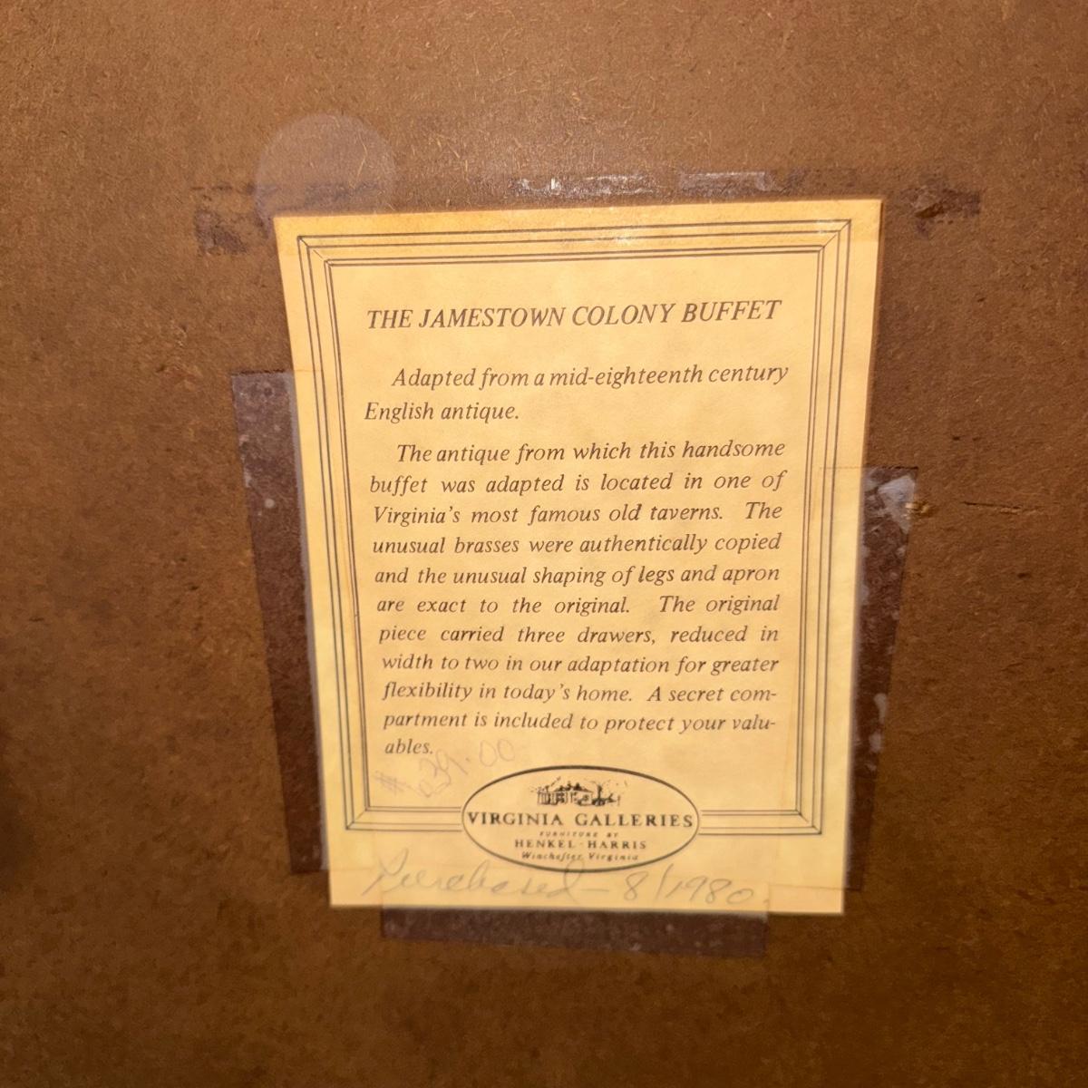 Henkel Harris The Jamestown Colony Cherry Buffet
