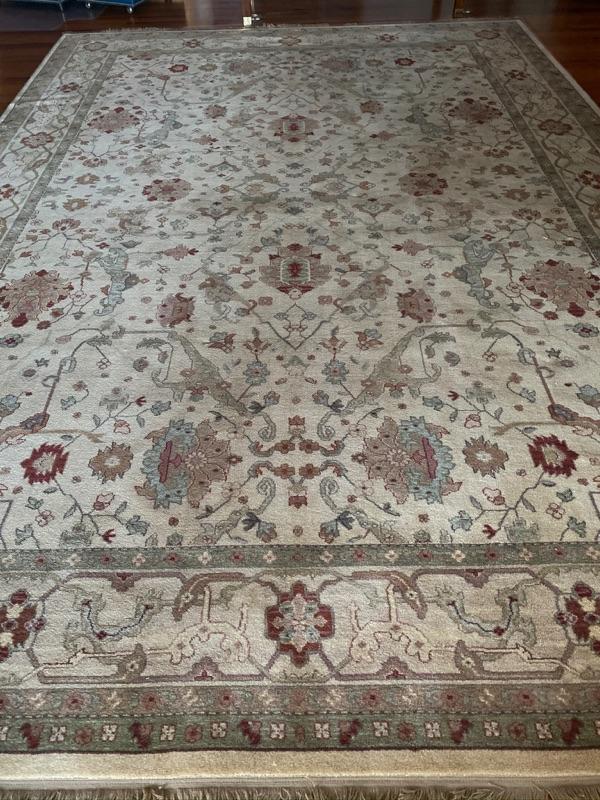 339: Large 10 x 14 Oushak Karastan Rug. With a beige base background color , no signs of fading or stains