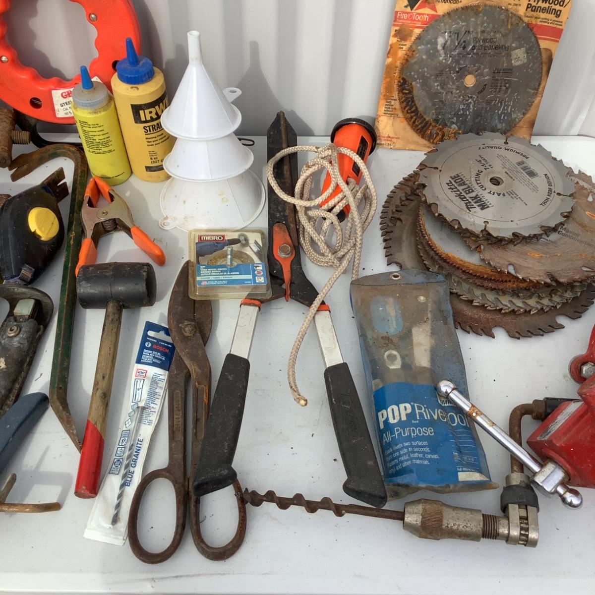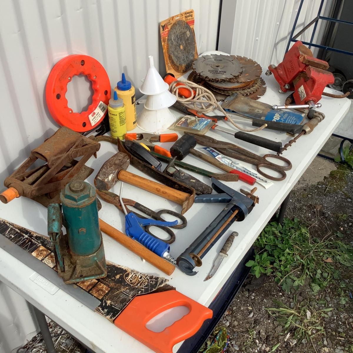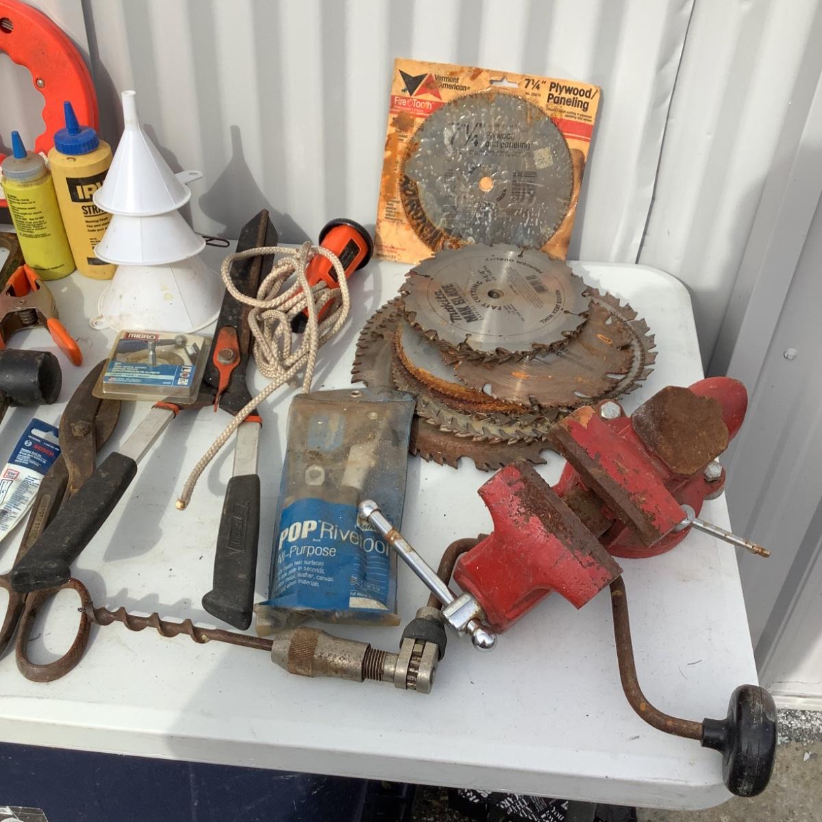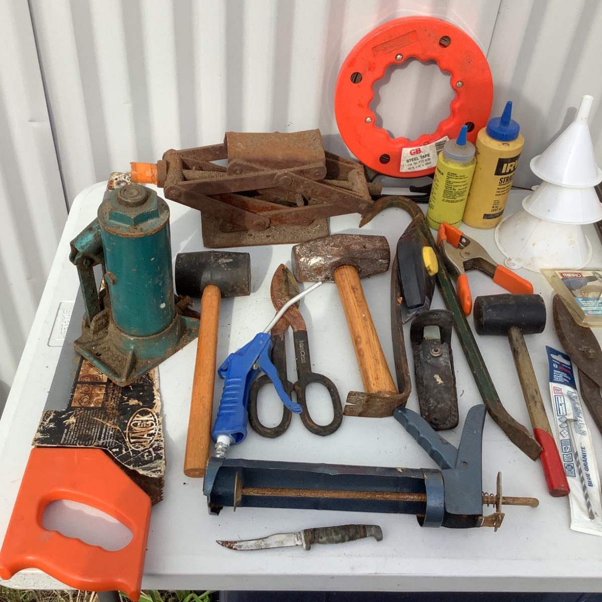 Includes hammers, mallets, vices, saw blades, chalk line w/refillers, caulk gun, steel tape, crowbar, & more!