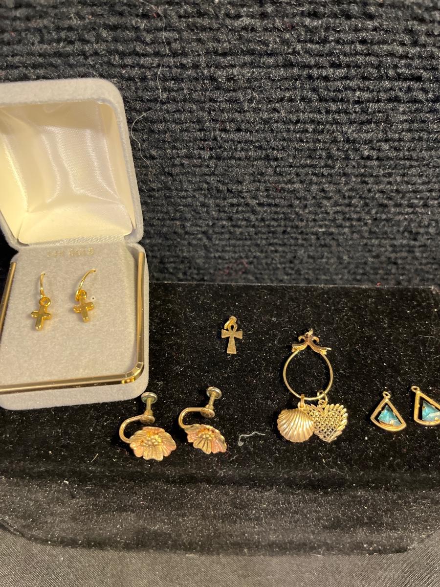 34- 14K Cross earrings, 14K pendant, 14K GF clip-ins, pendants