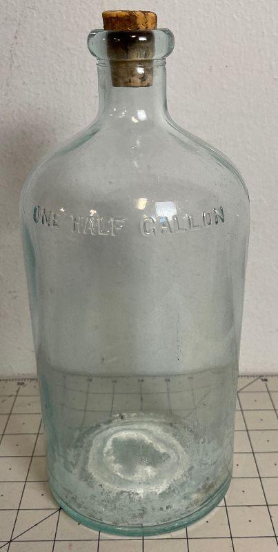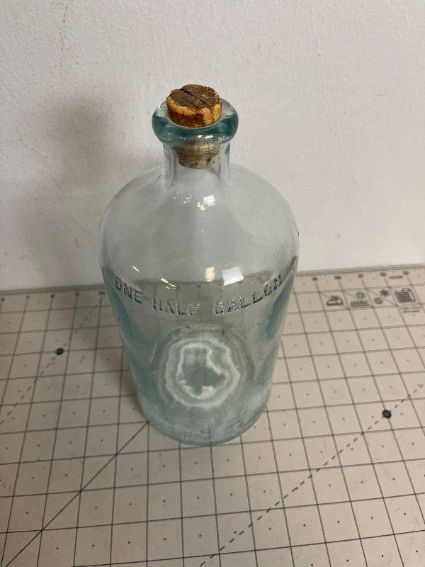 #34 Antique 1/2 Gallon Glass Jar Clear Blue