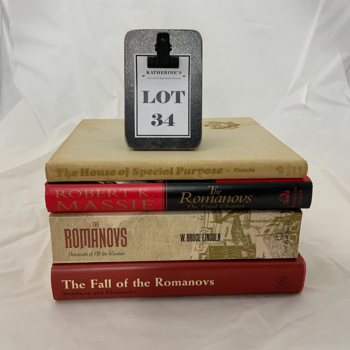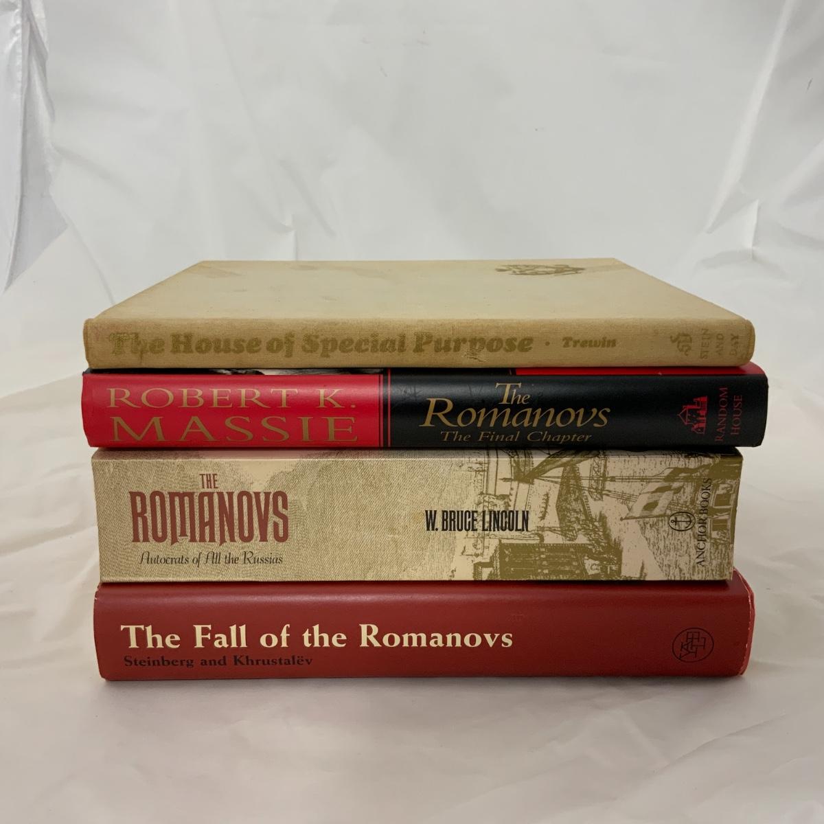 From the Estate of Peter Radovanovich: Four books about the Romanov Family, The House of Special Purpose by John Courtenay Trewin | The Romanovs; The Final Chapter by Robert K Massie | The Romanovs; Autocrats of All the Russias by W Bruce Lincoln | The Fall of the Romanovs by Mark D. Steinberg and Vladimir M Khrustalëv. All books are in good used condition, dust jackets show wear. Please see photos for details and condition. ::: Shipping is available on this lot. If you require shipping you must let us know at the close of the auction. We will coordinate with you after the item has been won. Shipping fees will include insurance up to or exceeding the value of all items being mailed. If you have any questions regarding this lot please contact the auctioneer either via this website, by direct email or by phone. PICK UP TIMES and other important information can be found in the TERMS and DESCRIPTION of the auction. Please take a look for pertinent information. Thanks!