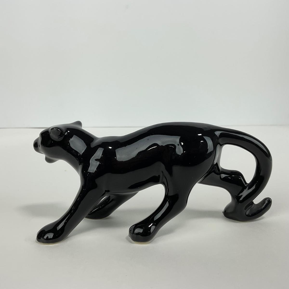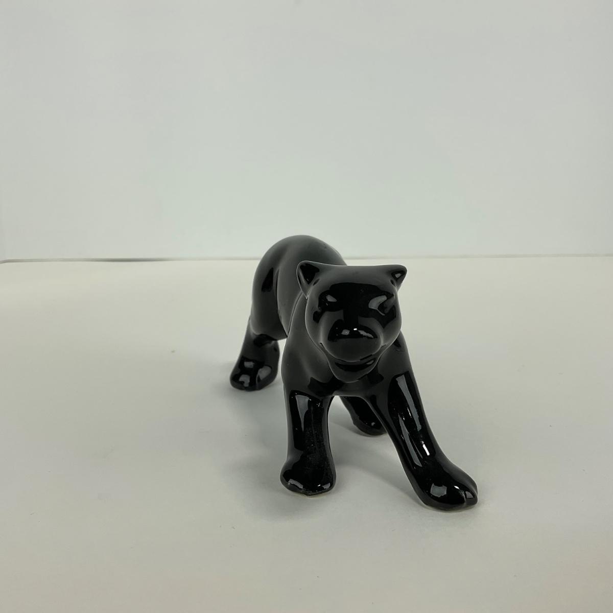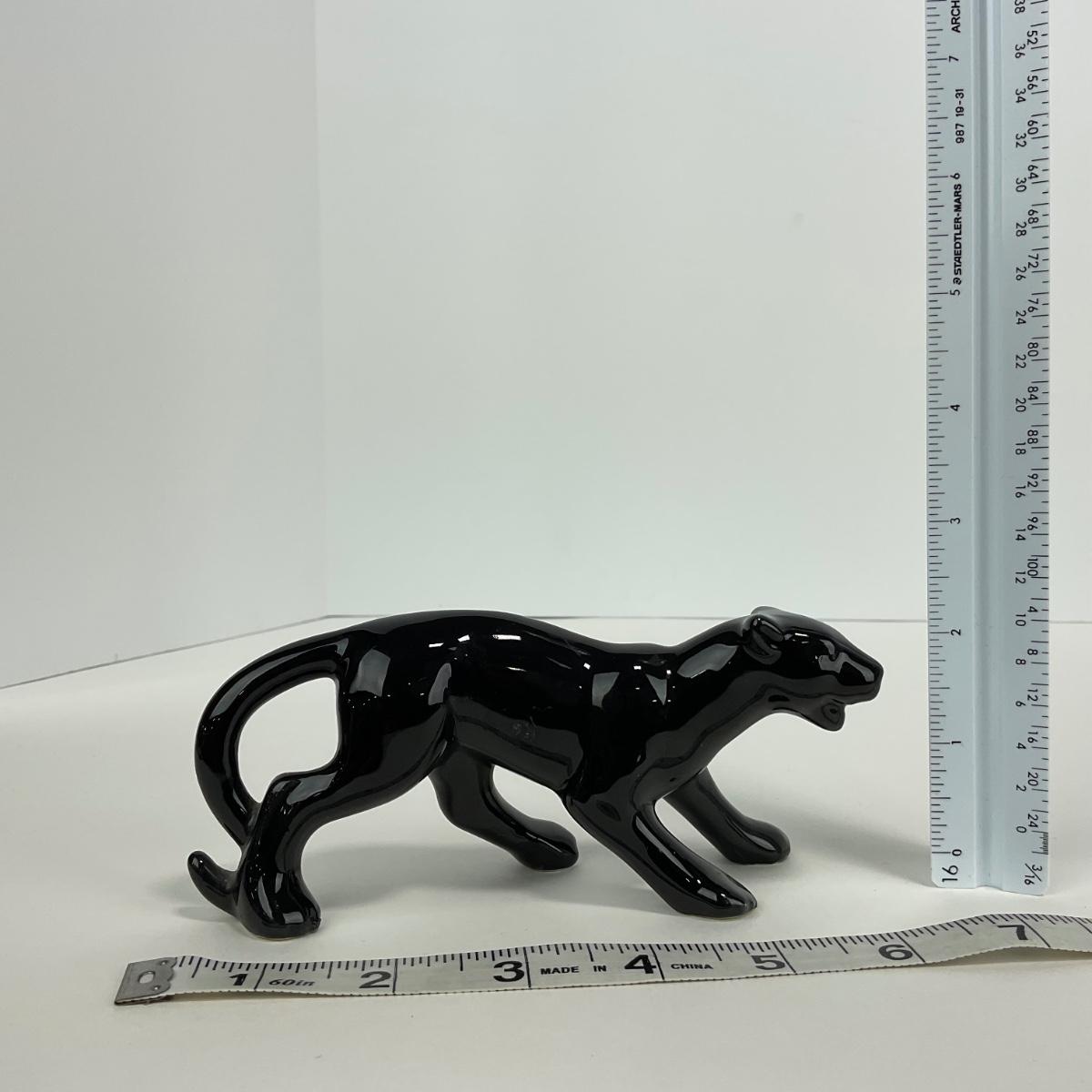 One vintage unmarked Ceramic black panther figure. This piece has no damage, and appears to be in great shape with no visable chips, cracks, or broken pieces. Please see photos for details and condition. Any condition statement is given as a courtesy to a client, is an opinion, and should not be treated as a statement of fact. Reference to condition written, oral or within a condition report shall not be regarded as a full account of condition and may not include all defects, alterations, or restorations. Absence of a condition report does not imply a lot is flawless or lacking imperfections or damage. Katherine’s Auction & Appraisal Service shall have no responsibility for any error or omission. Returns shall not be accepted on the basis of condition. ::: Shipping is available on this lot. If you require shipping you must let us know at the close of the auction. We will coordinate with you after the item has been won. Shipping fees will include insurance up to or exceeding the value of all items being mailed. If you have any questions regarding this lot please contact the auctioneer either via this website, by direct email or by phone. PICK UP TIMES and other important information can be found in the TERMS and DESCRIPTION of the auction. Please take a look for pertinent information. Thanks!