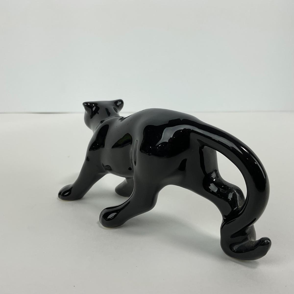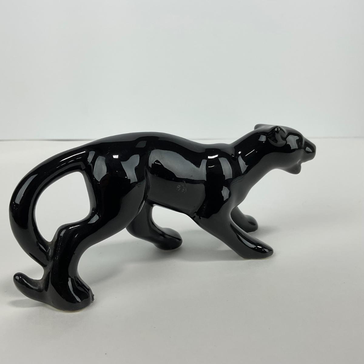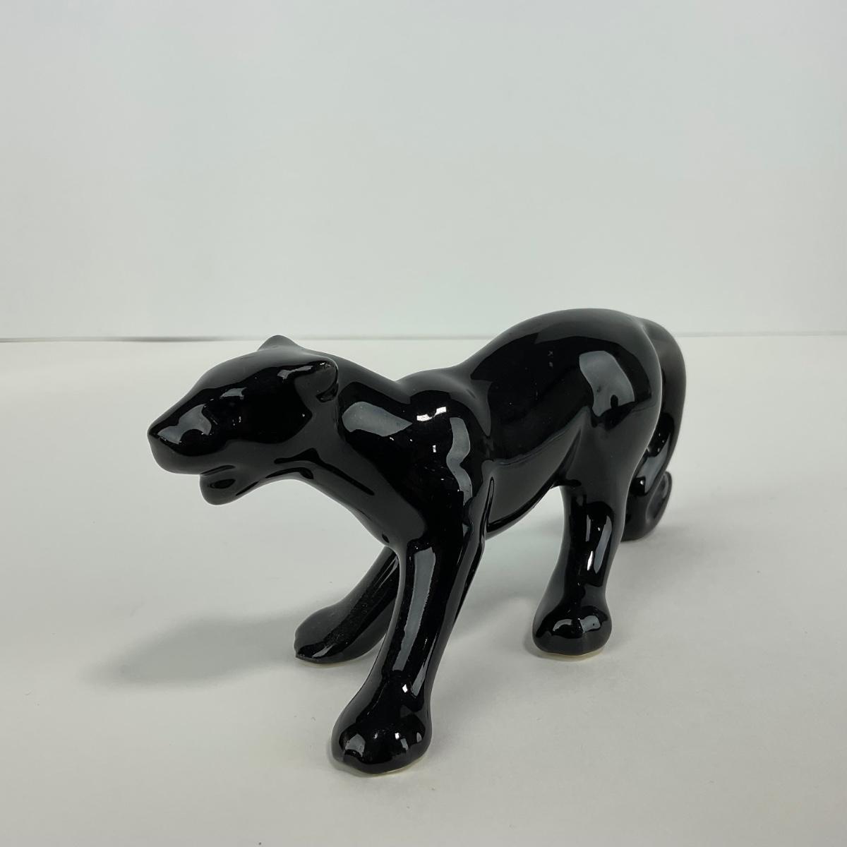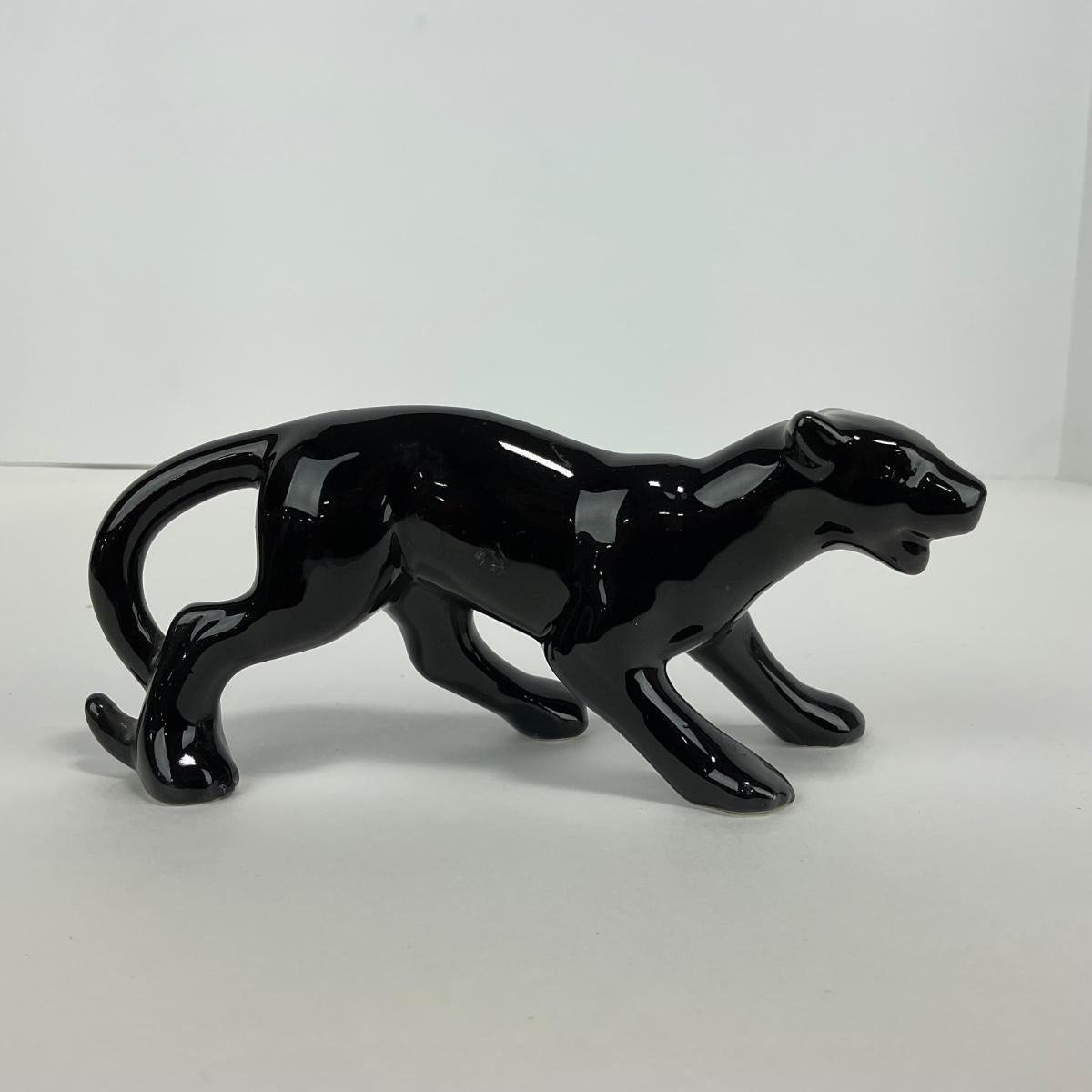 One vintage unmarked Ceramic black panther figure. This piece has no damage, and appears to be in great shape with no visable chips, cracks, or broken pieces. Please see photos for details and condition. Any condition statement is given as a courtesy to a client, is an opinion, and should not be treated as a statement of fact. Reference to condition written, oral or within a condition report shall not be regarded as a full account of condition and may not include all defects, alterations, or restorations. Absence of a condition report does not imply a lot is flawless or lacking imperfections or damage. Katherine’s Auction & Appraisal Service shall have no responsibility for any error or omission. Returns shall not be accepted on the basis of condition. ::: Shipping is available on this lot. If you require shipping you must let us know at the close of the auction. We will coordinate with you after the item has been won. Shipping fees will include insurance up to or exceeding the value of all items being mailed. If you have any questions regarding this lot please contact the auctioneer either via this website, by direct email or by phone. PICK UP TIMES and other important information can be found in the TERMS and DESCRIPTION of the auction. Please take a look for pertinent information. Thanks!