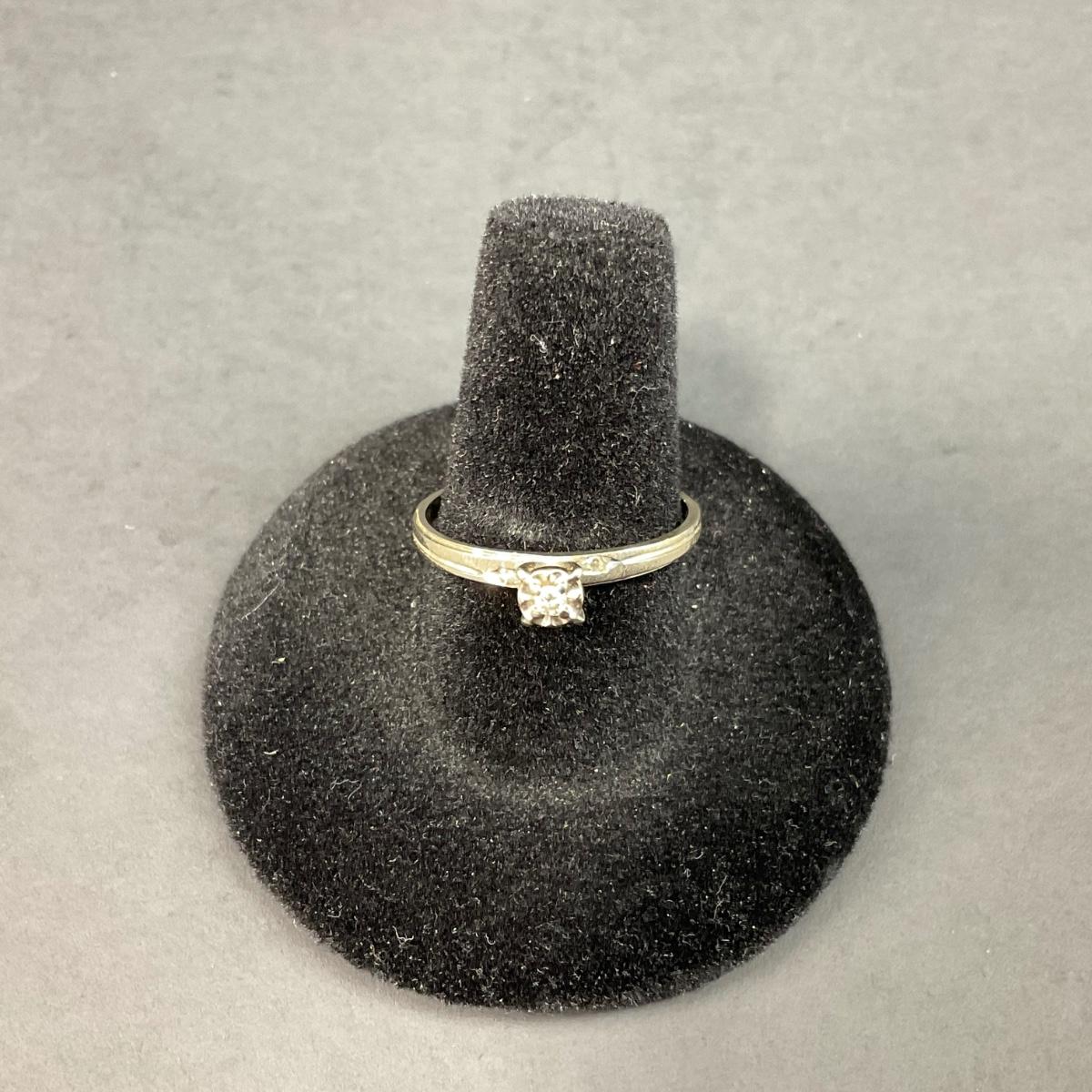 One marked 10k ring size 8.25. This ring has a tested diamond center stone. This piece has no damage, and appears to be in great shape with no visable chips, cracks, or broken pieces. Please see photos for details and condition. Any condition statement is given as a courtesy to a client, is an opinion, and should not be treated as a statement of fact. Reference to condition written, oral or within a condition report shall not be regarded as a full account of condition and may not include all defects, alterations, or restorations. Absence of a condition report does not imply a lot is flawless or lacking imperfections or damage. Katherine’s Auction & Appraisal Service shall have no responsibility for any error or omission. Returns shall not be accepted on the basis of condition. ::: Shipping is available on this lot. If you require shipping you must let us know at the close of the auction. We will coordinate with you after the item has been won. Shipping fees will include insurance up to or exceeding the value of all items being mailed. If you have any questions regarding this lot please contact the auctioneer either via this website, by direct email or by phone. PICK UP TIMES and other important information can be found in the TERMS and DESCRIPTION of the auction. Please take a look for pertinent information. Thanks!