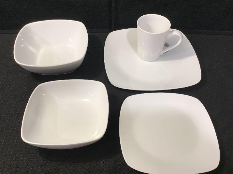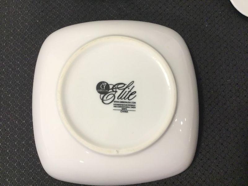 34 - Gibson Elite 8 place settings white dinnerware & large serving bowl(4  pcs/place setting
