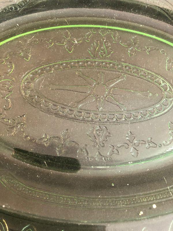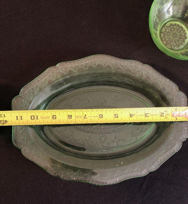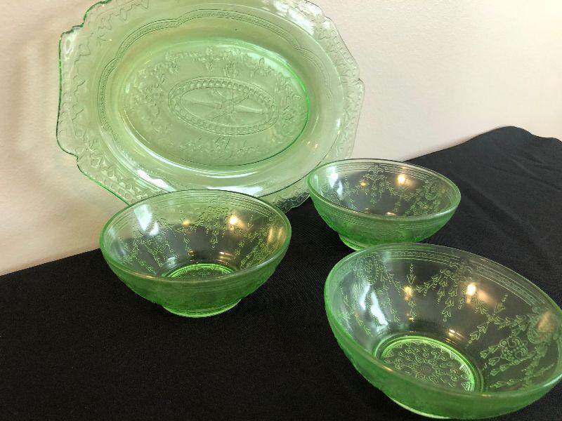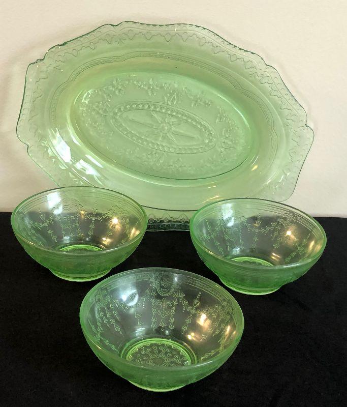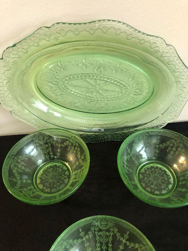 #34 Green Depression Glass Platter & Bowls