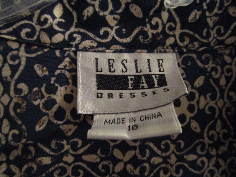 #34 Leslie Fay Navy Blue Print Dress Size 16