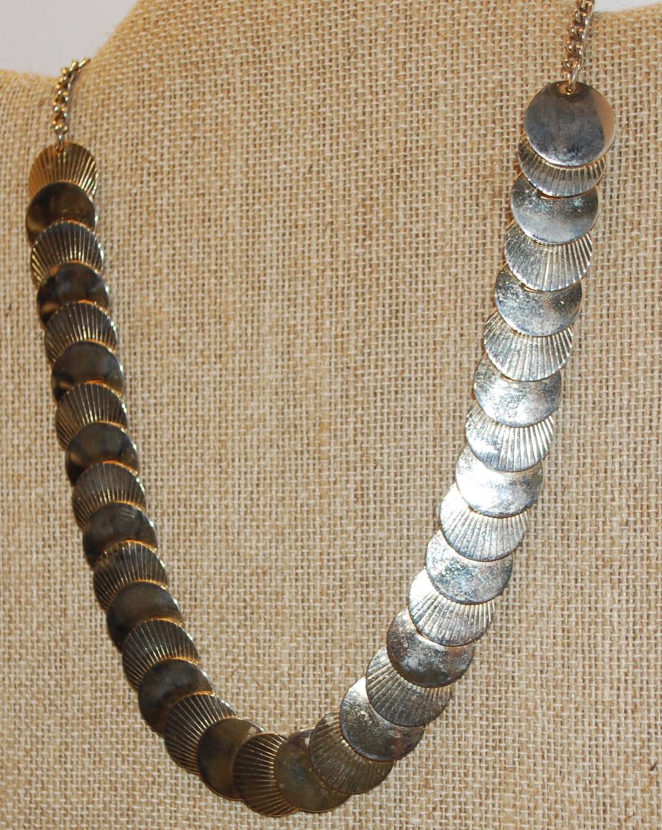34 Snake-Style Gold Tone Circles Necklace 17" L
