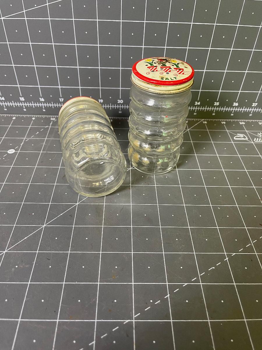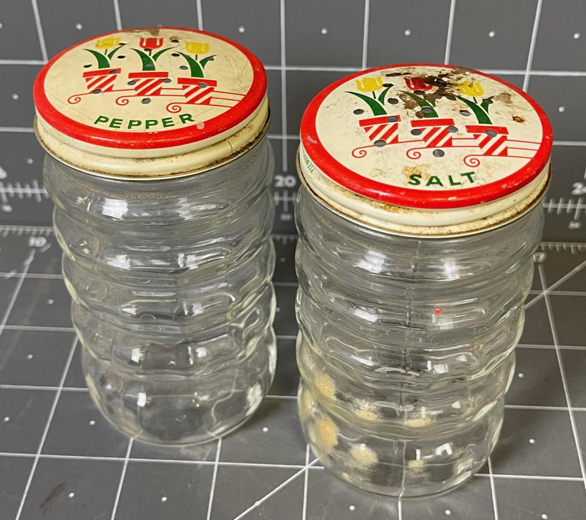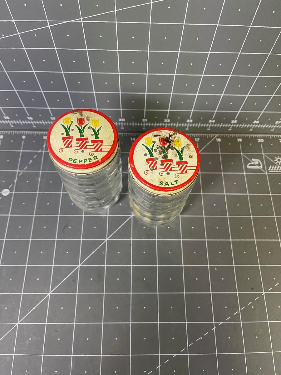 #34 Vintage Stove Top Tulip Metal Lids S & P