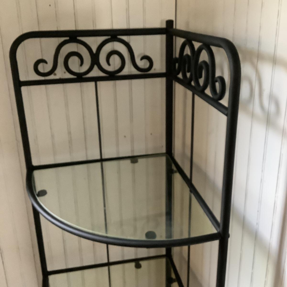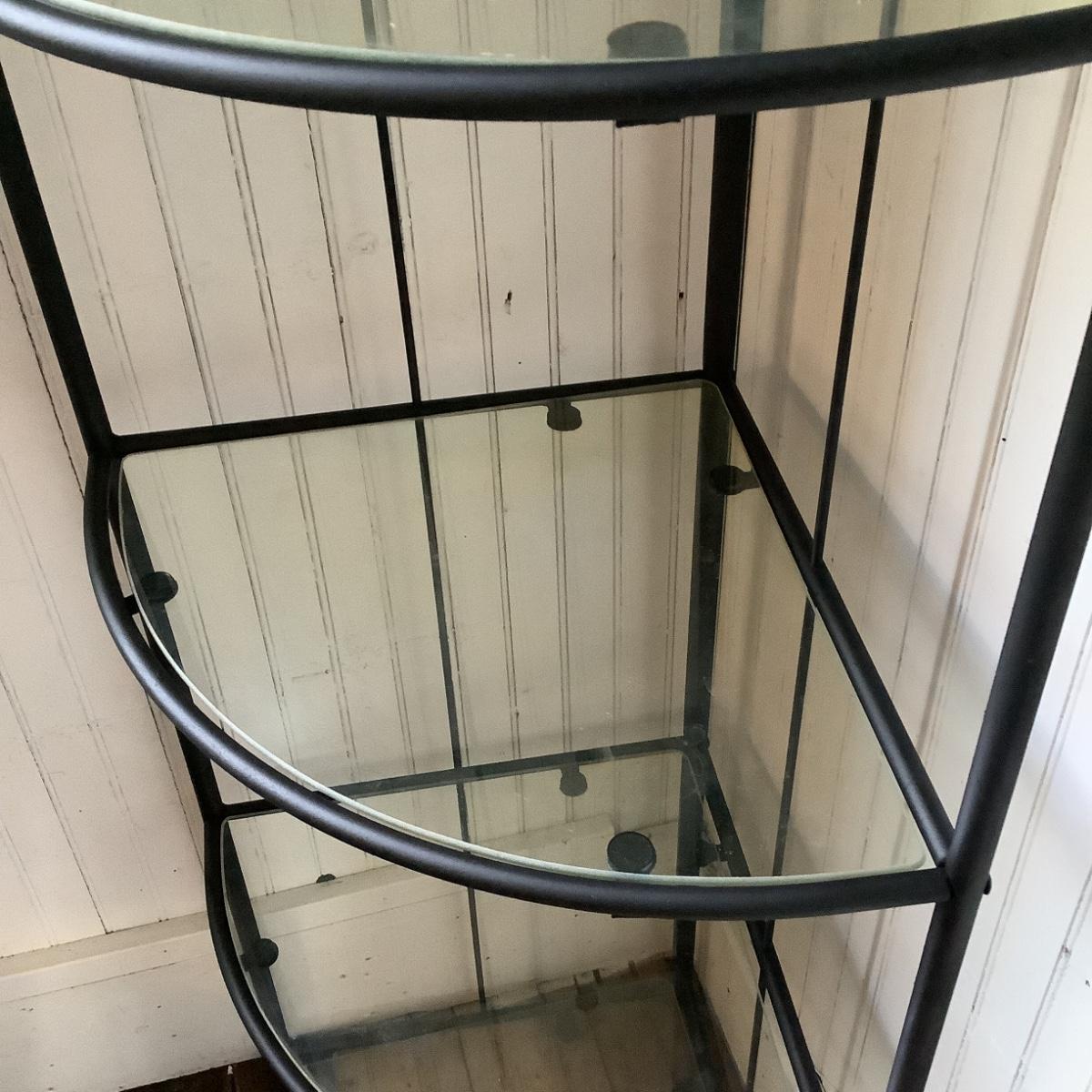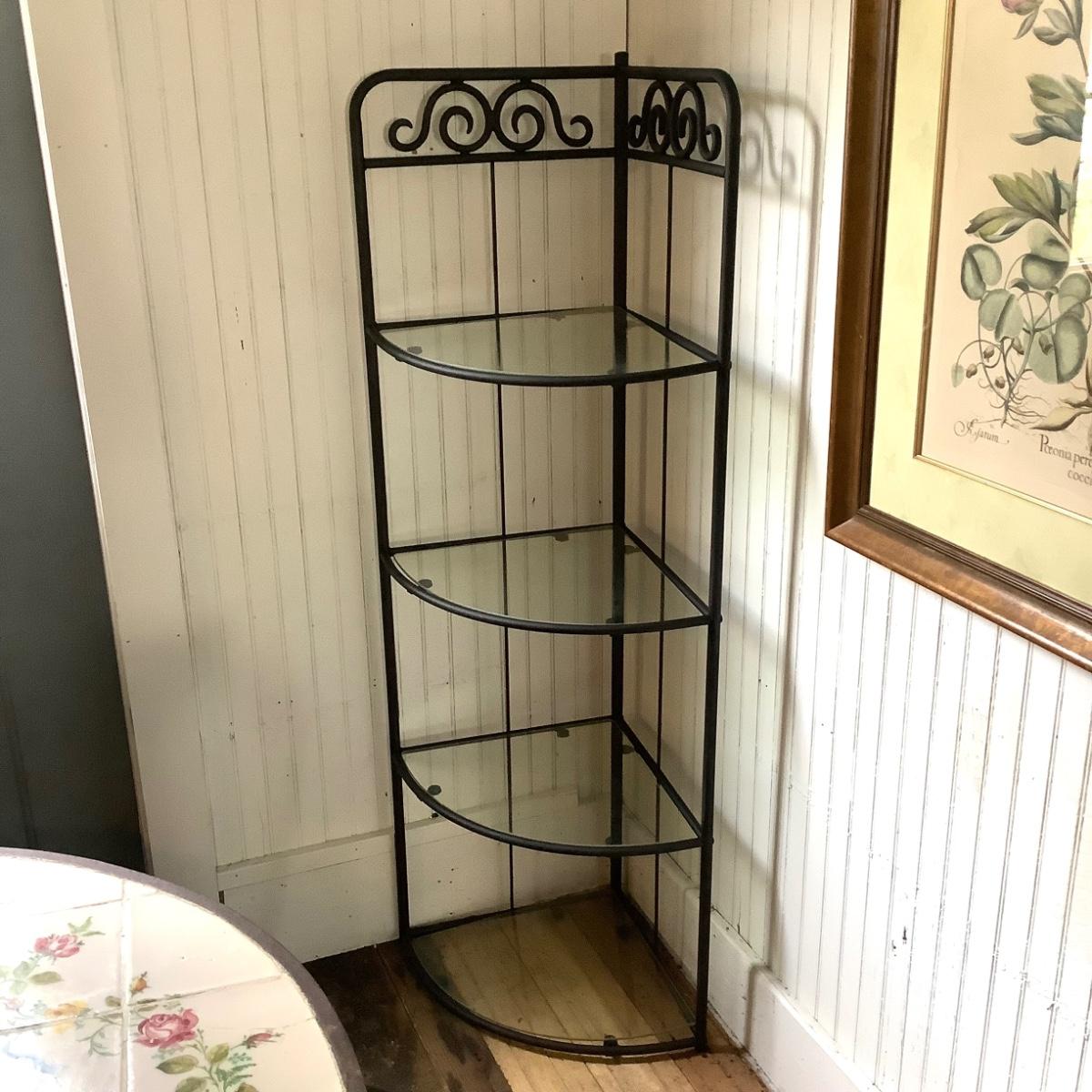 Four glass shelf metal corner stand measuring 54" high x 22" wide x 14" deep