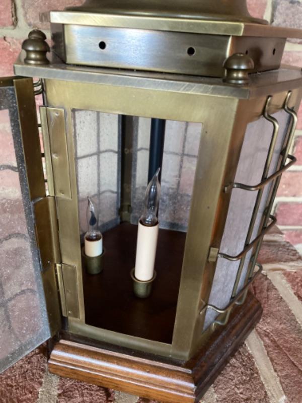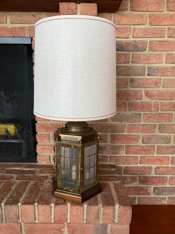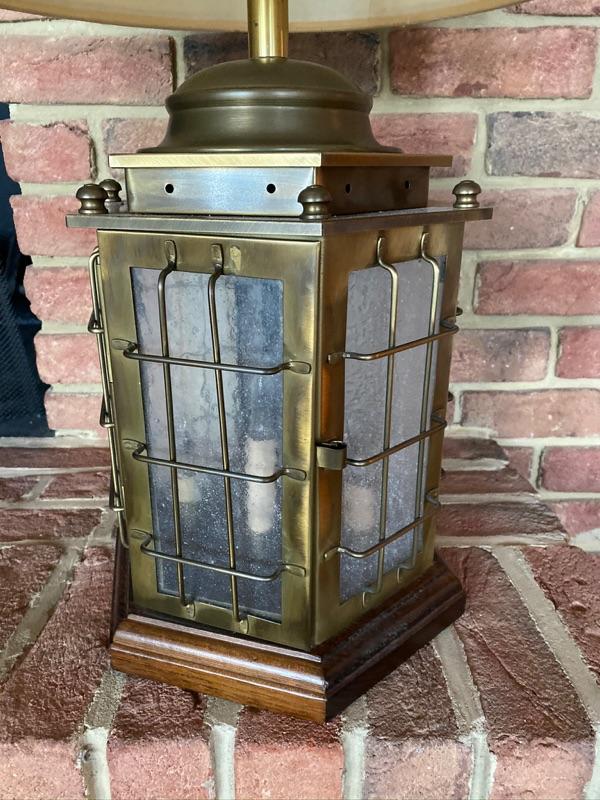 Brass Lantern Lamp with shade. Measures 33.5” tall