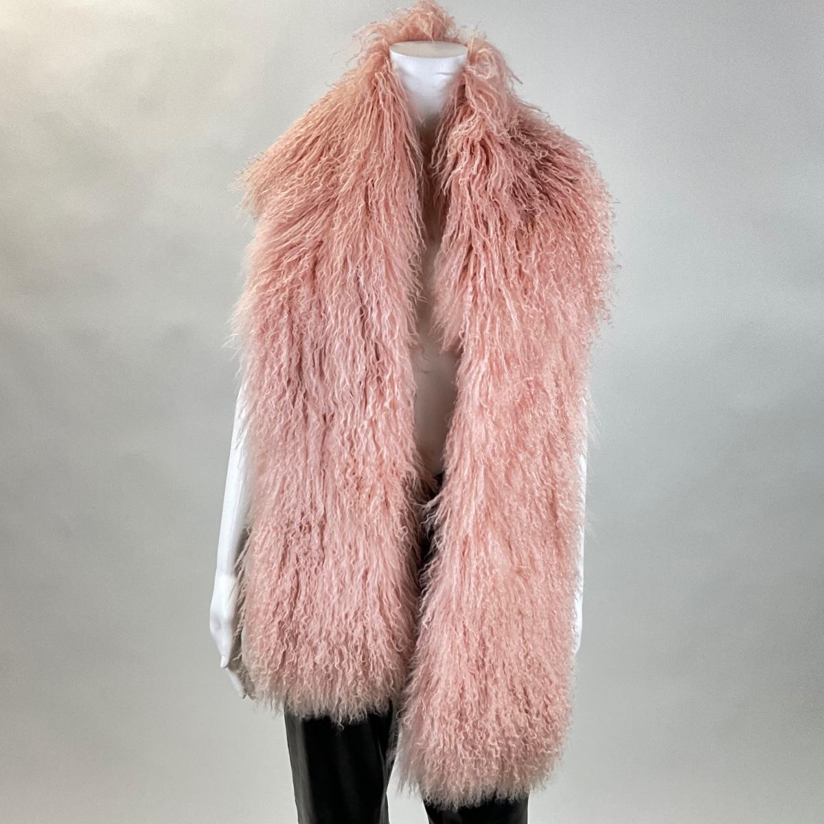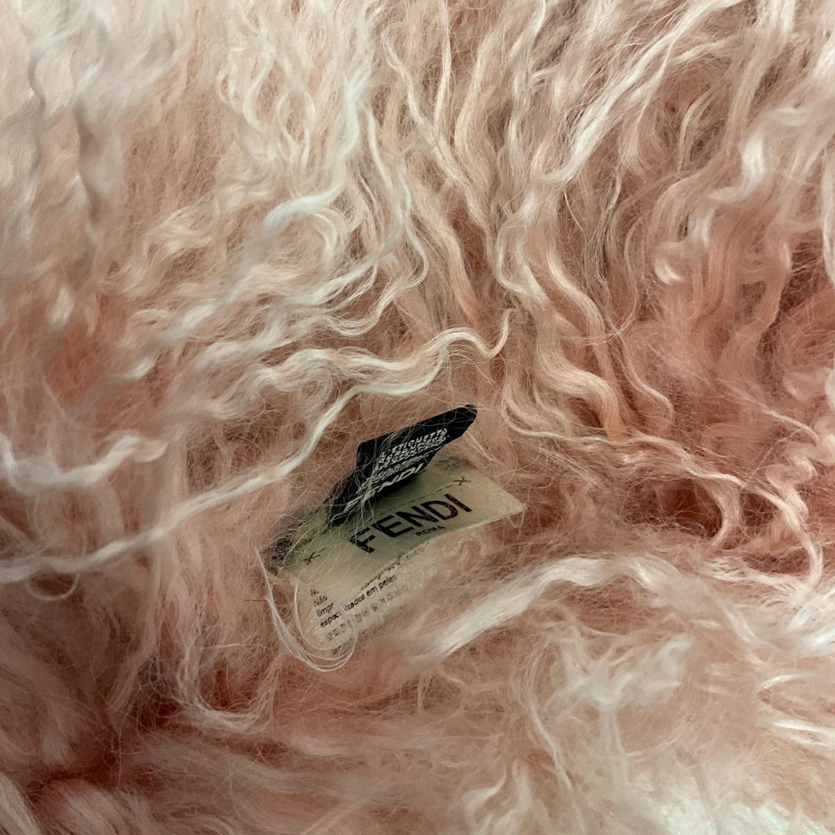 341 FENDI Long Pink & White Curly Lamb Stole