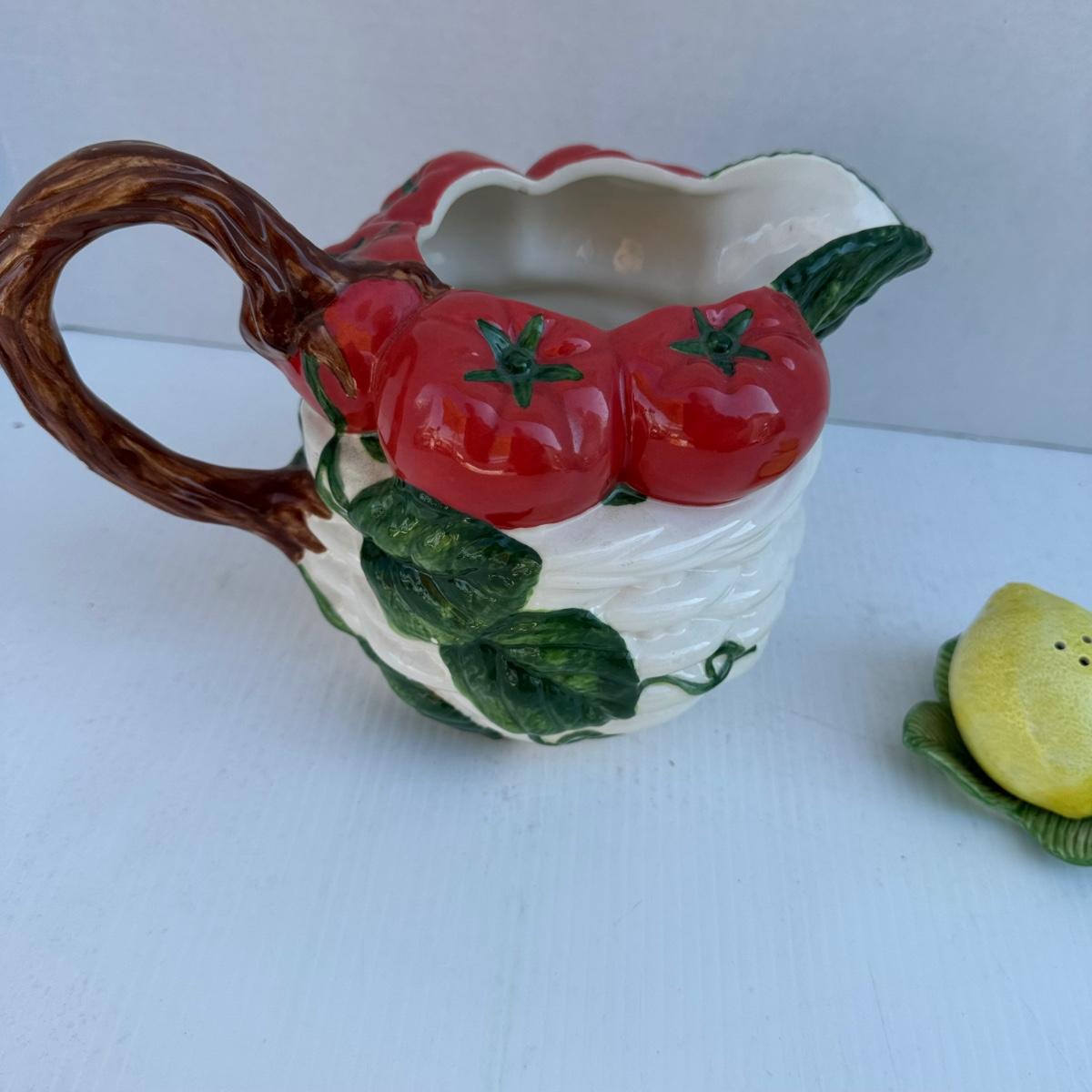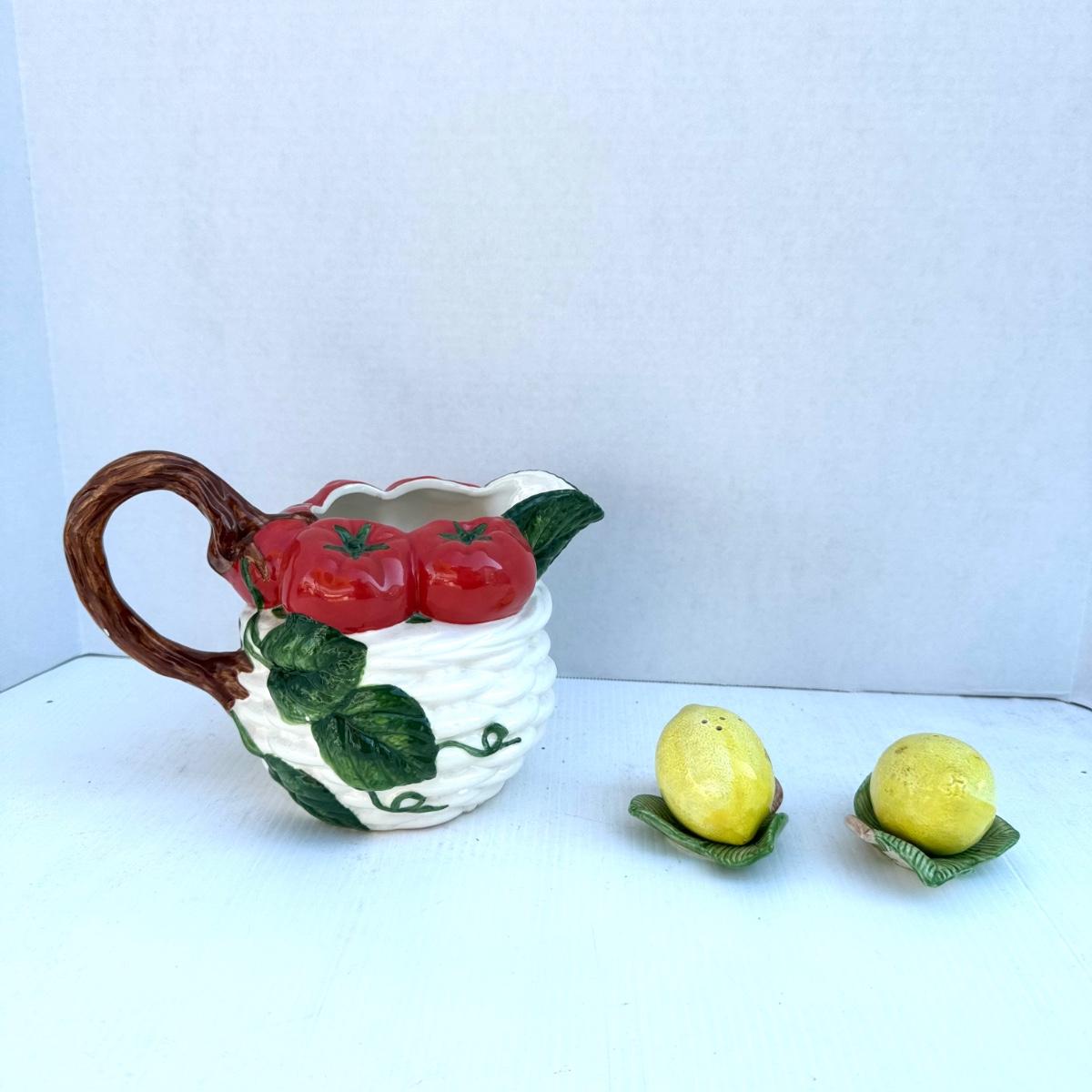 342 Fitz and Floyd Tomato Pitcher and Lemon Salt and Pepper