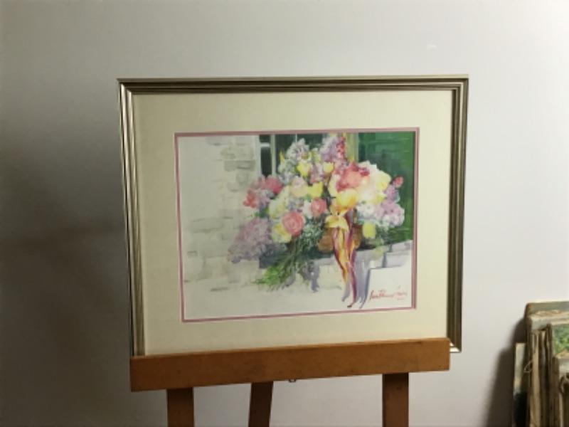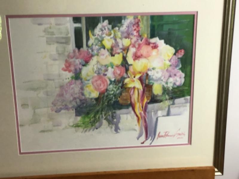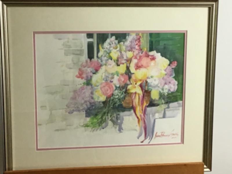 Original Watercolor by Jean Ranney Smith “˜01, “ basket of flowers “,