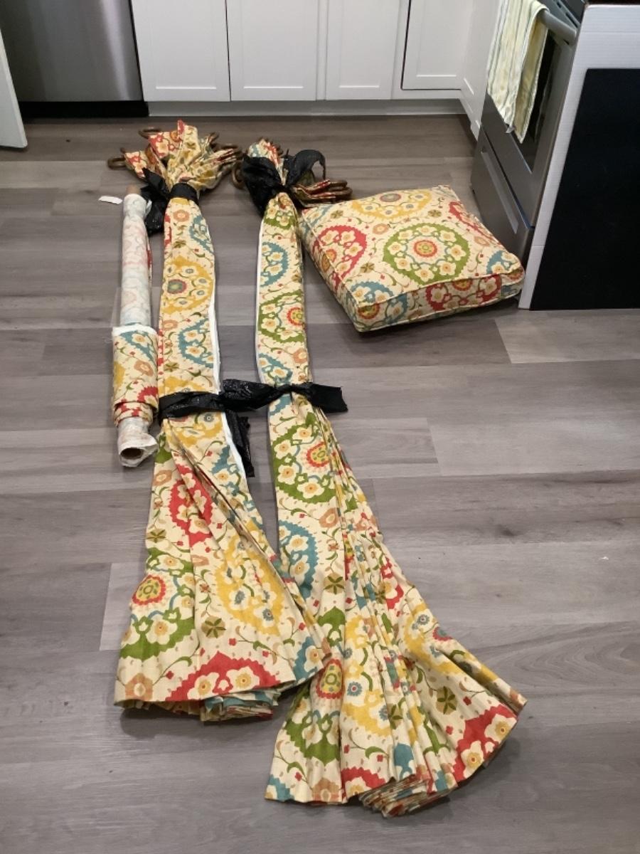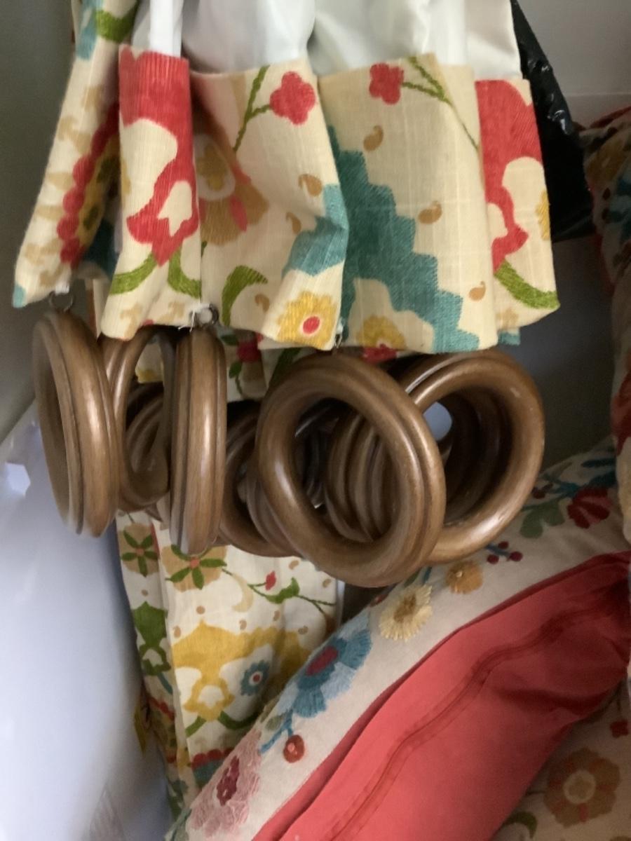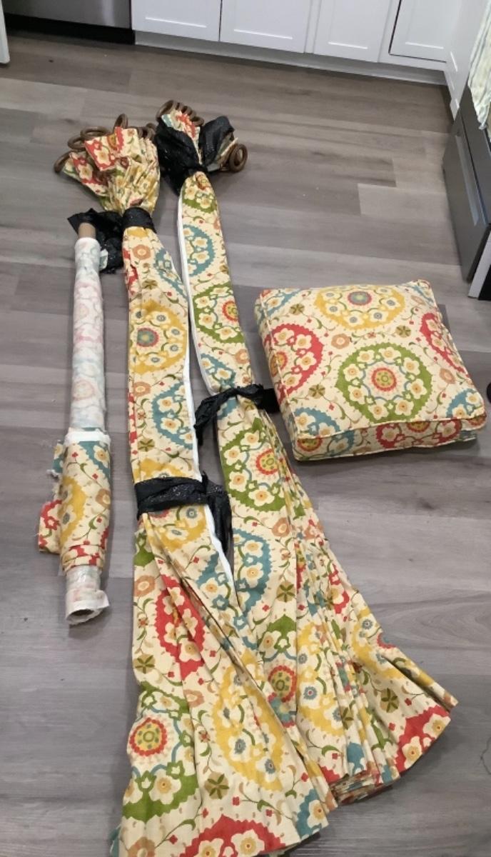 343. Custom Made Curtains with Wooden Rings, Pillow & Additional Fabric