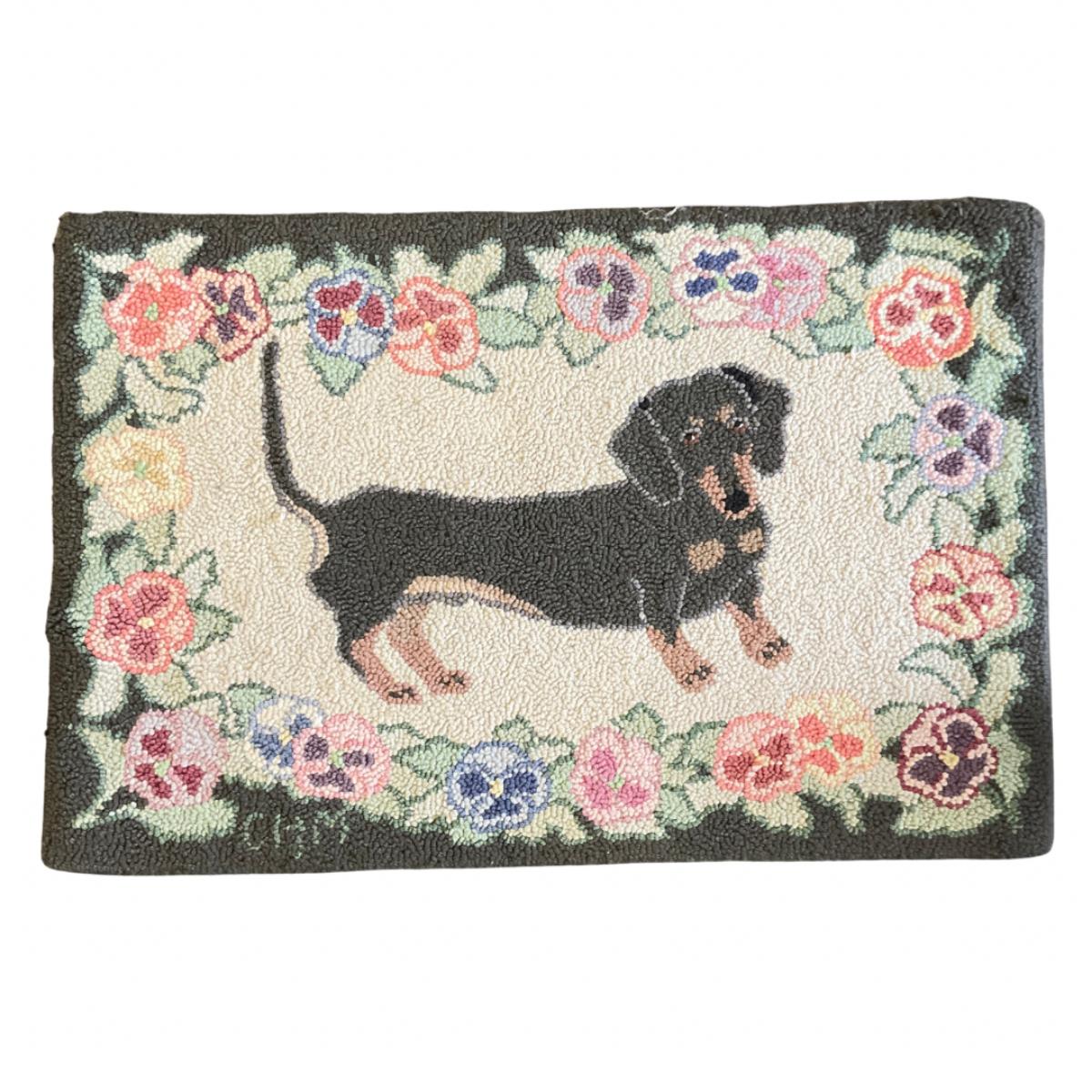 343 Hand-Hooked Dachshund & Floral Rug Signed And Dyed By McAdoo