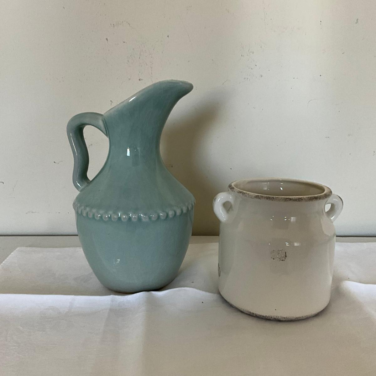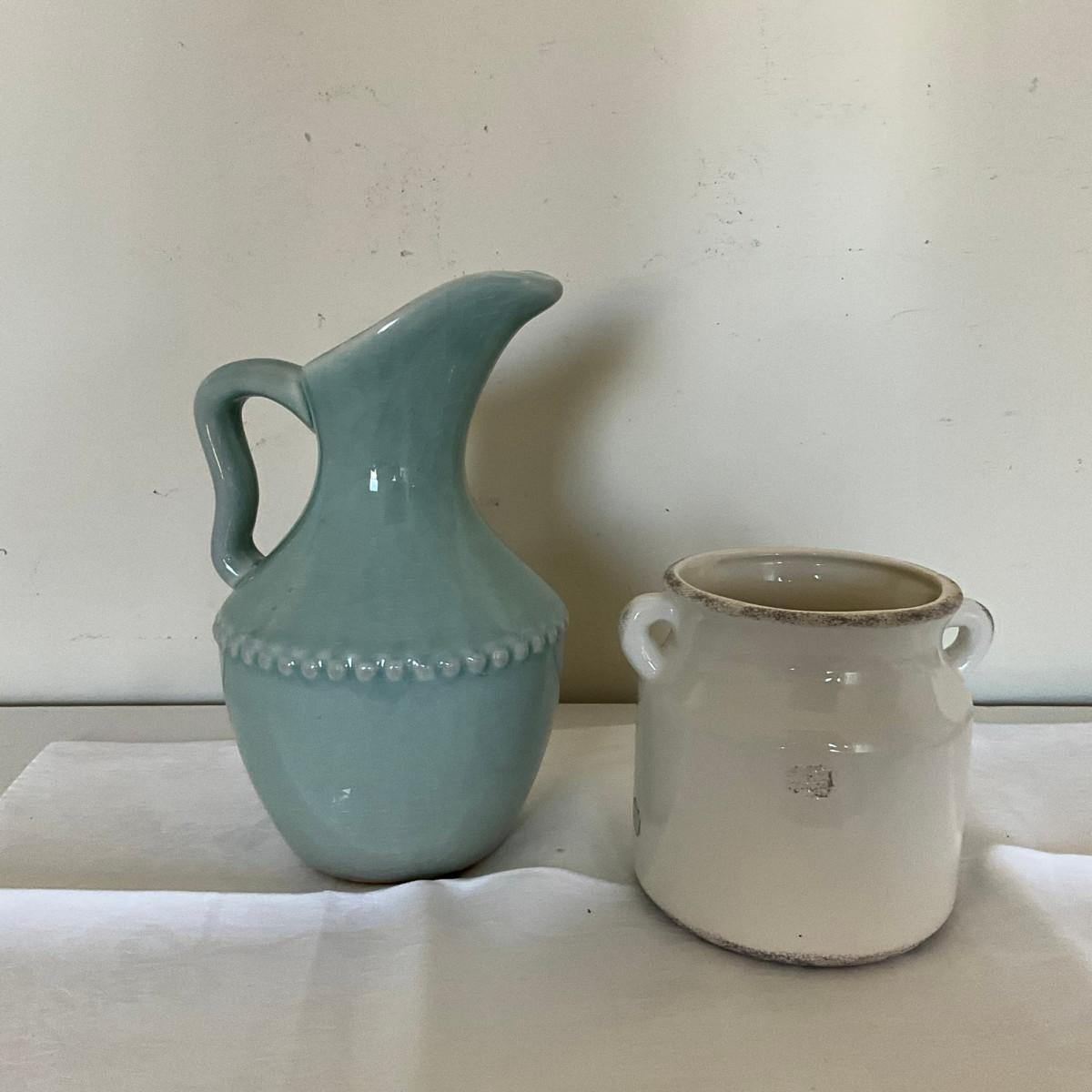 343 Vintage Ceramic Pitcher & Small Crock Set
