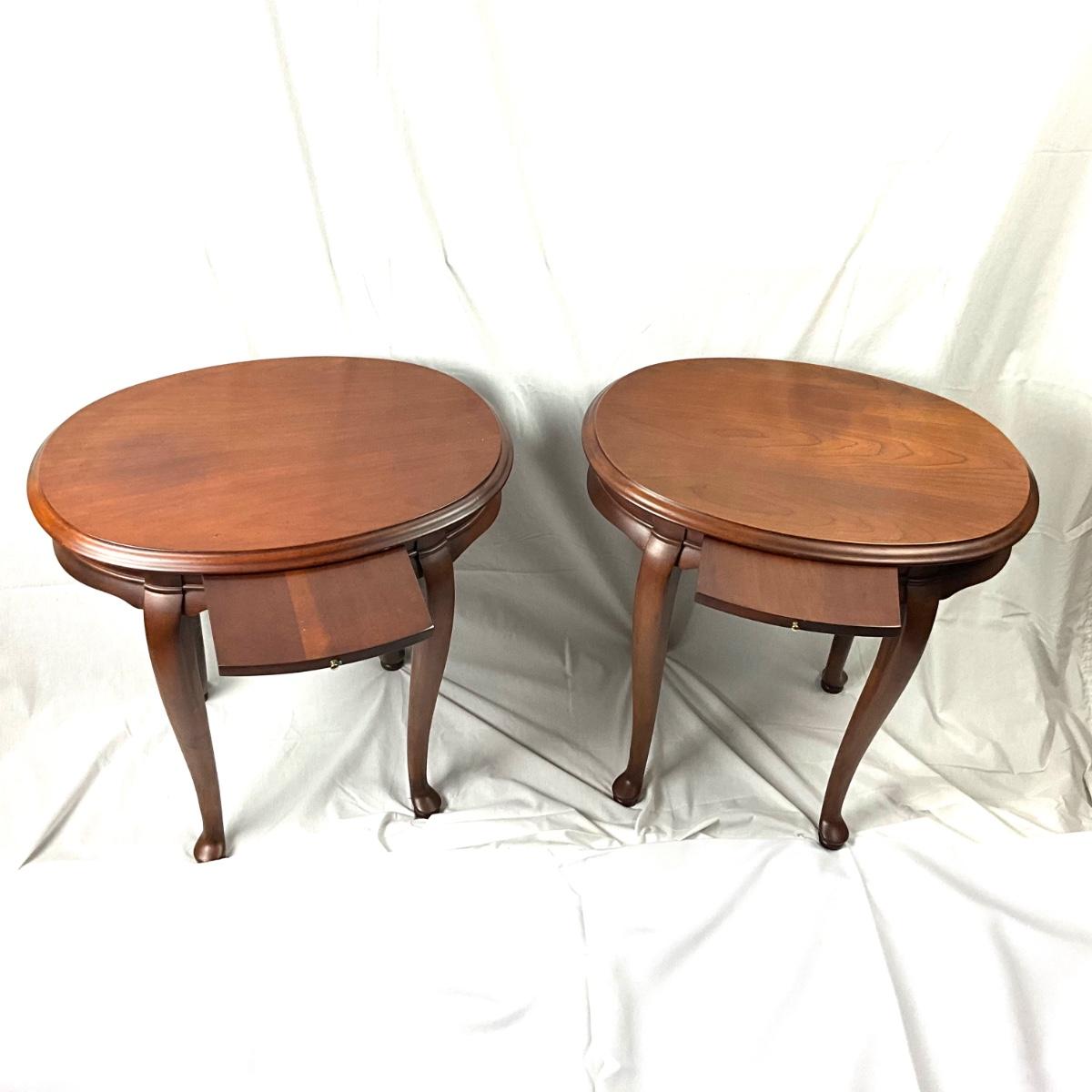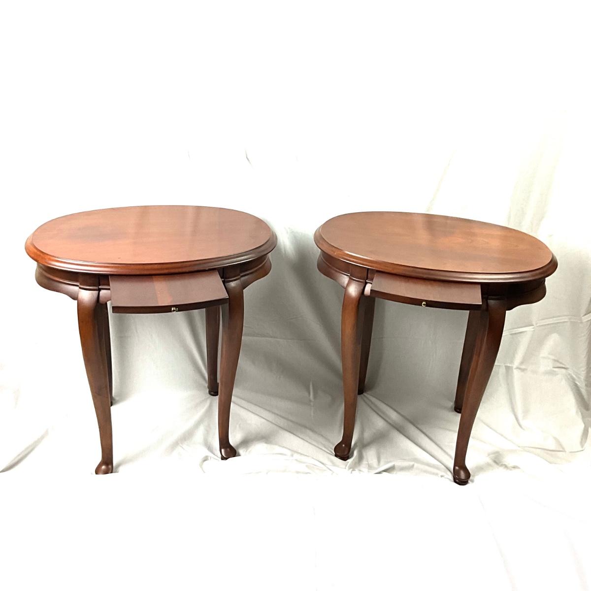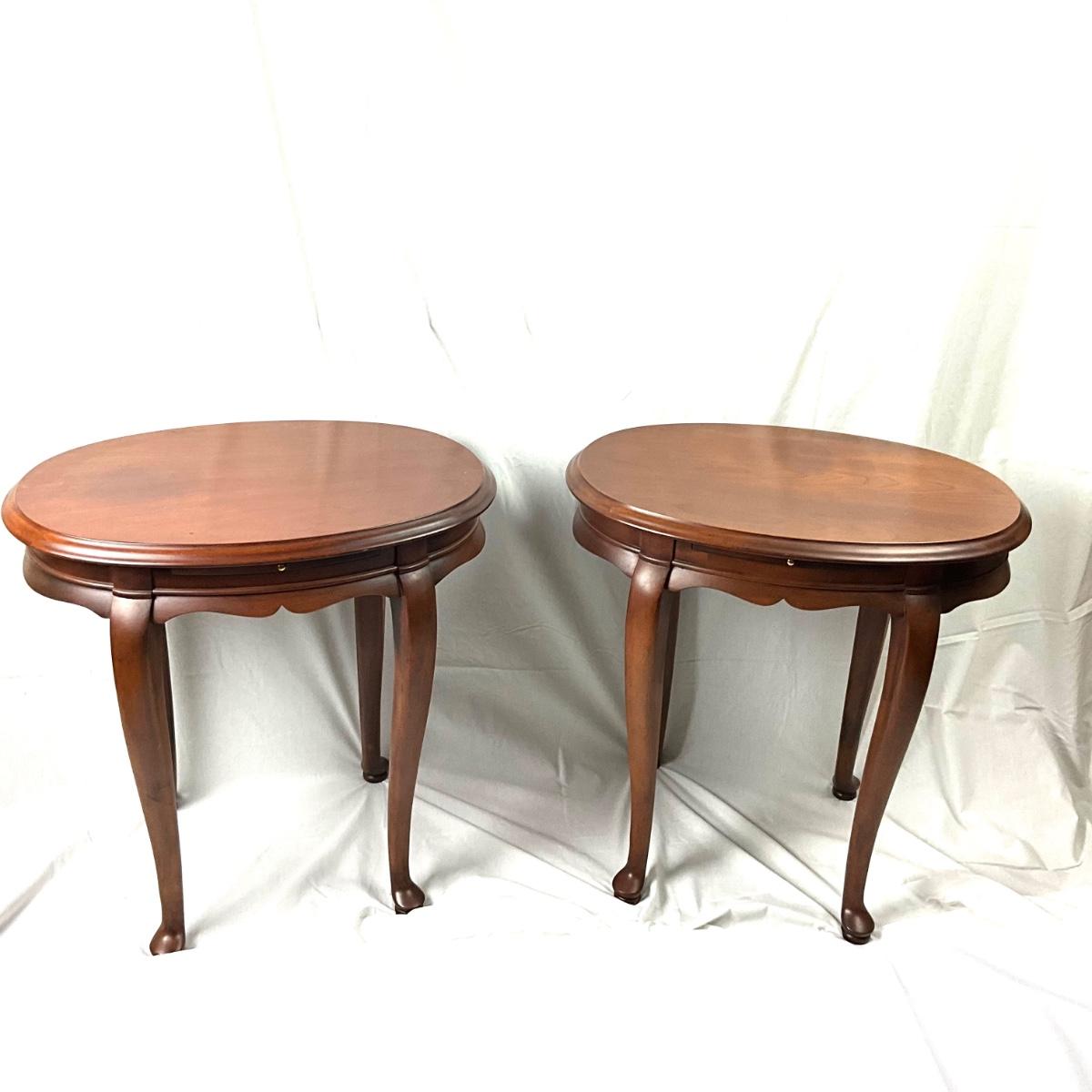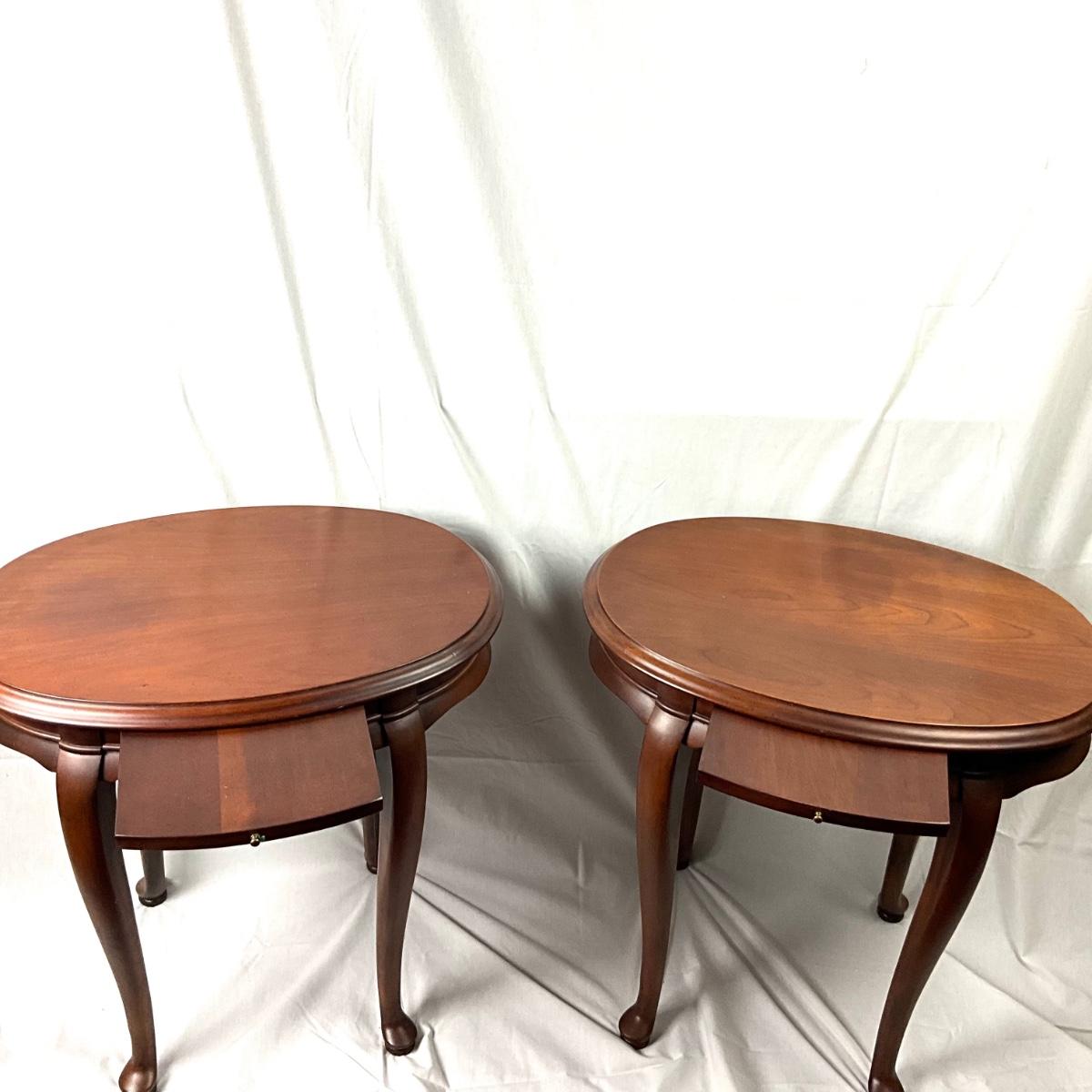 344 Vintage Hekman Oval Side Tables with Pull out Shelf