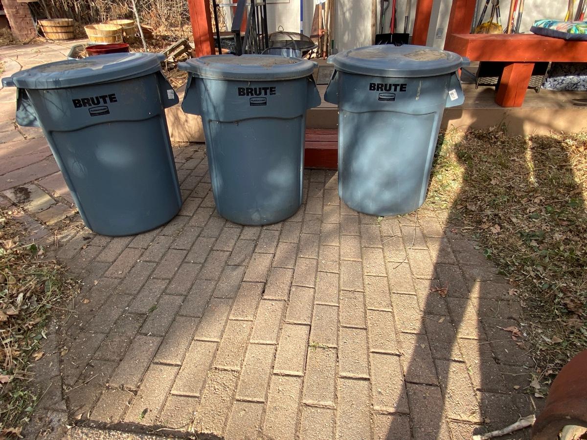 3-44 GALLON BRUTE RUBBERMAID TRASH CANS