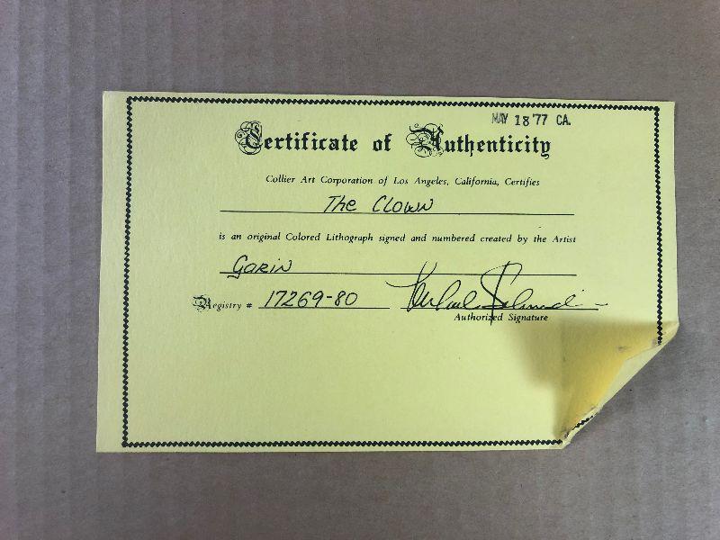 #344 NEAT Picture THE CLOWN #'ed Print 94 of 250 By A. GARIN